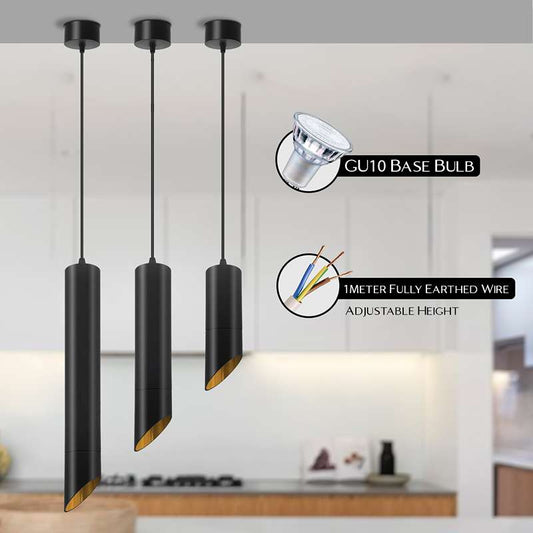 Lange kegelvormige hanglamp, zwarte buisvormige plafondlamp ~4594