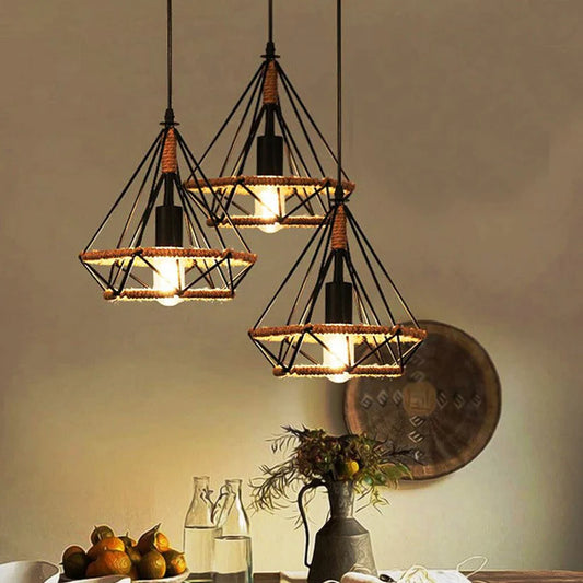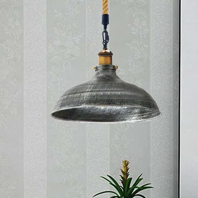 Industriële vintage metalen hanglamphouder van henneptouw~1126