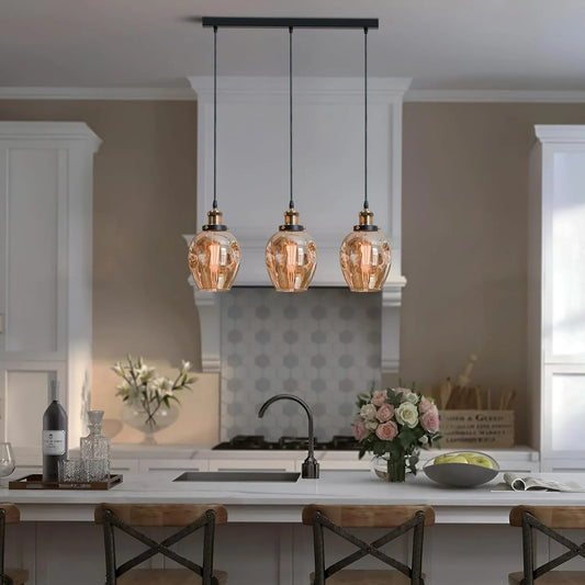 Industrial Floral Glass 3-Light Pendant | Industrial Ceiling Fixture ~6420