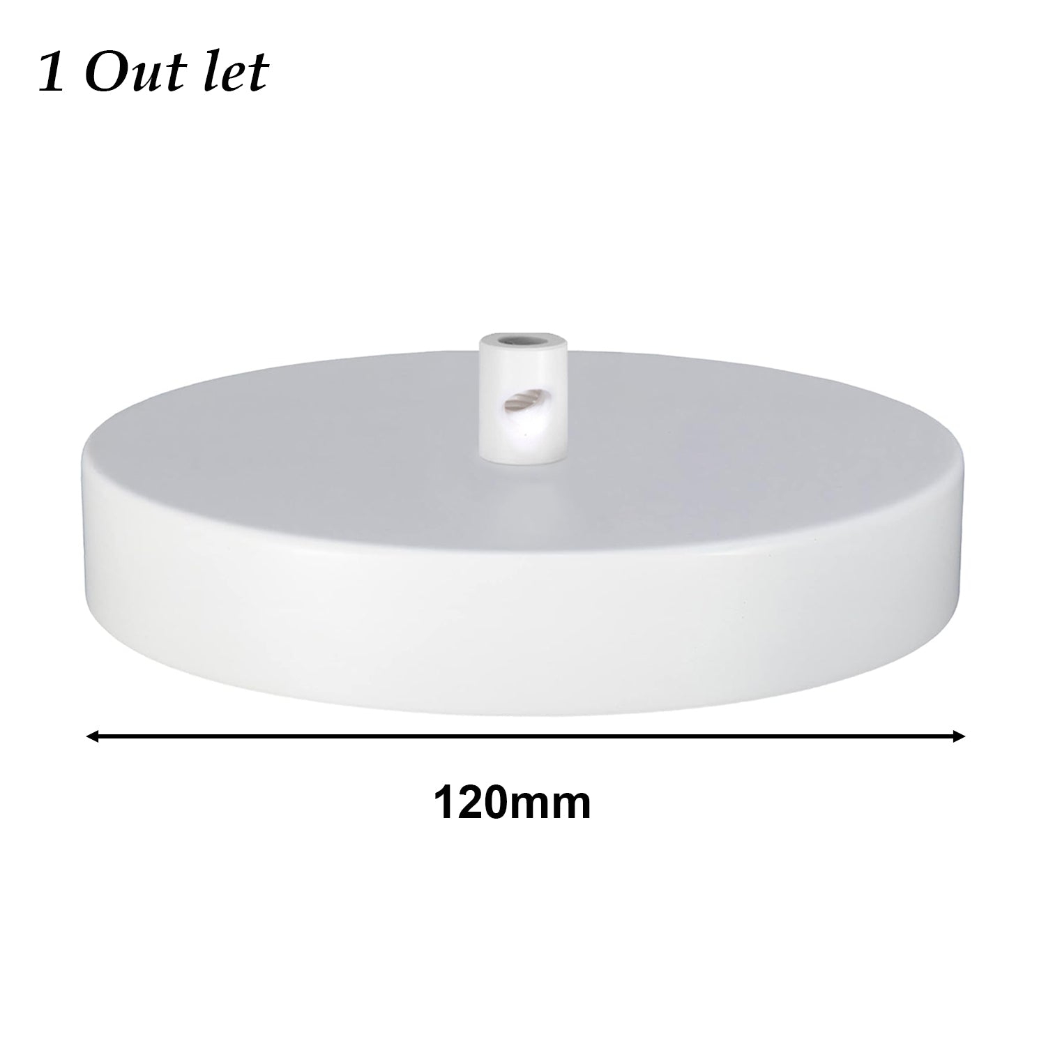 Ronde plafondkap van metaal. Wordt geleverd met snoerdoorvoeren, maar zonder stoffen kabelsnoer.