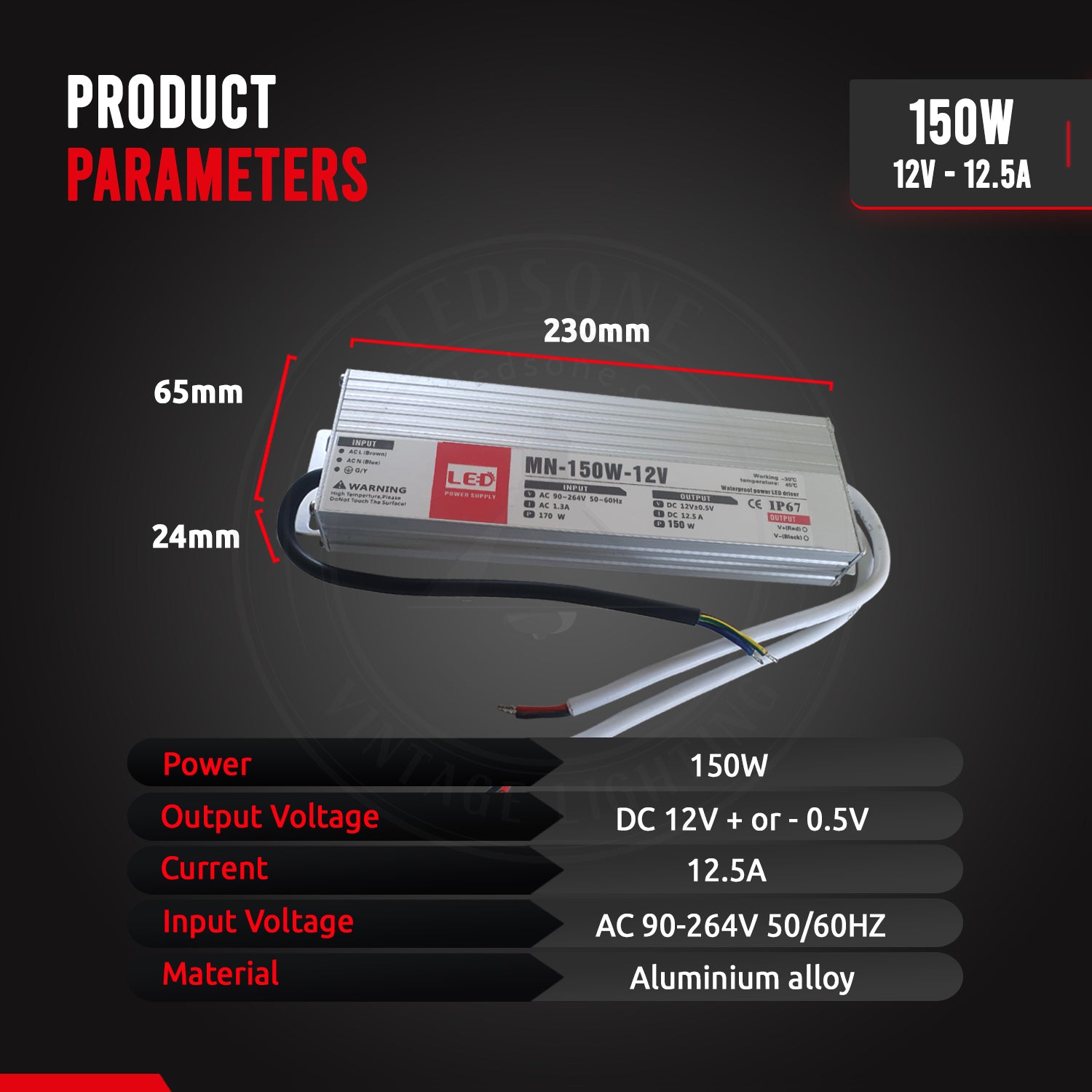 - 1 x DC12V 12,5A LED-voedingstransformator