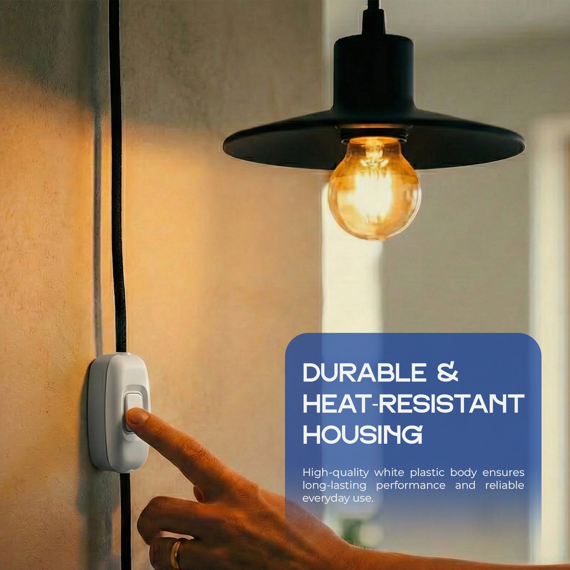 - EASY ON/OFF CONTROL Modern rocker switch for smooth operation, perfect for lighting or small appliance use.