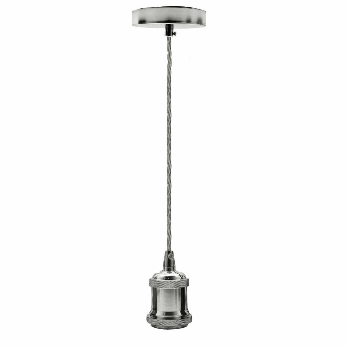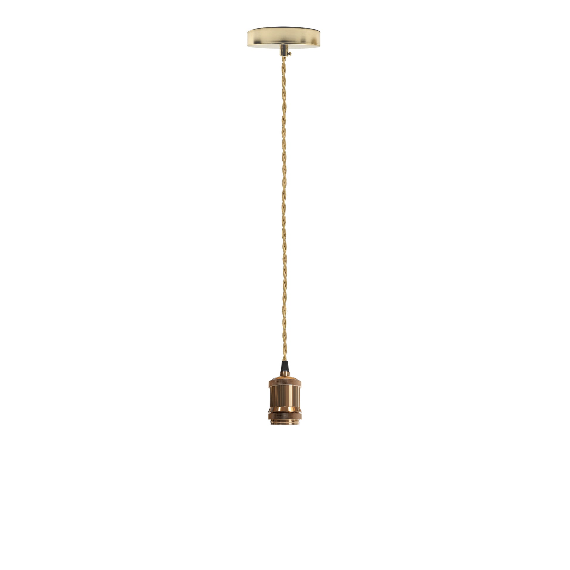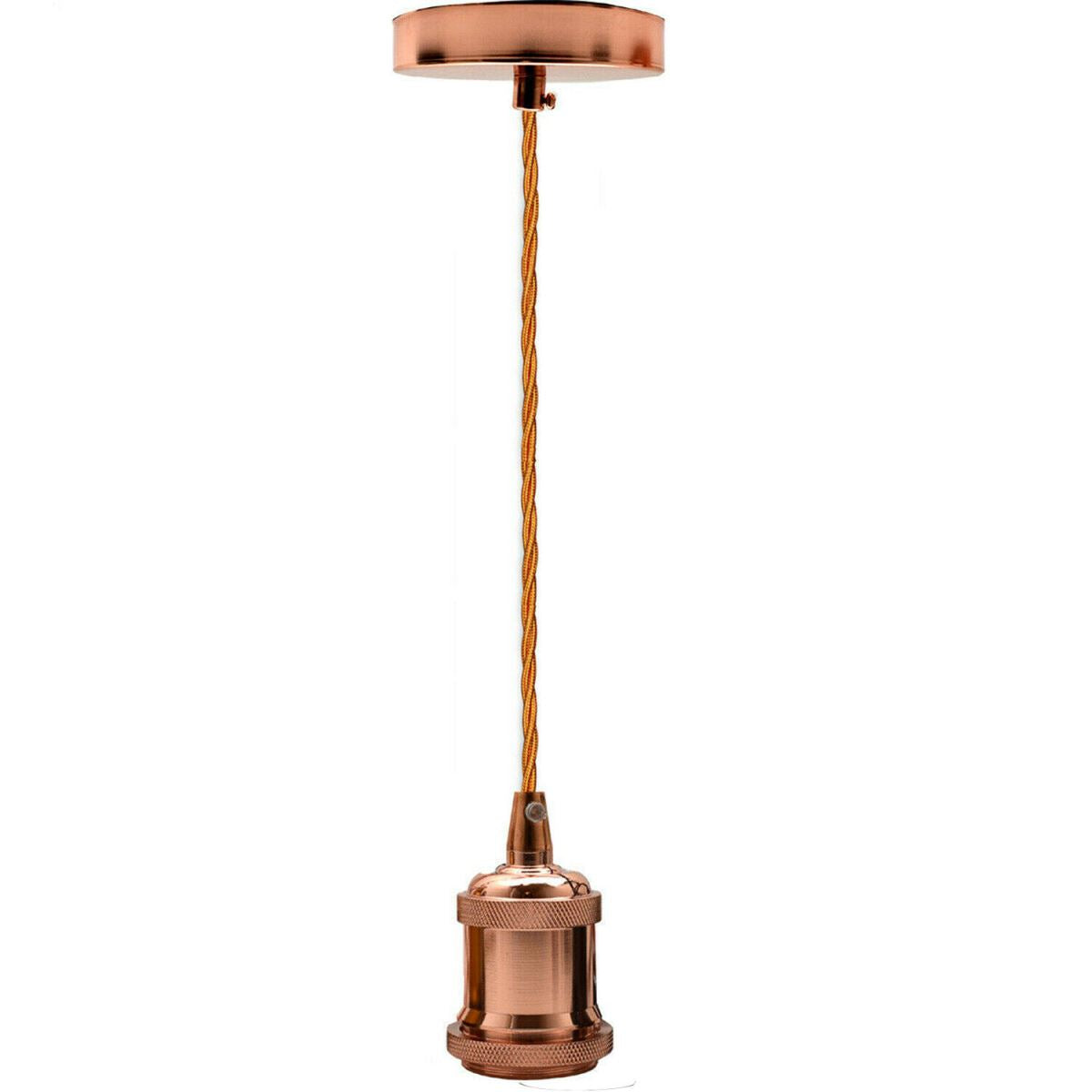 - 1x Hanglampset (vintage, hoog gepolijste lampenhouder met 1 m 3-aderige gedraaide stoffen kabel, 1x plafondrozet met accessoires) De lamp is niet inbegrepen.
