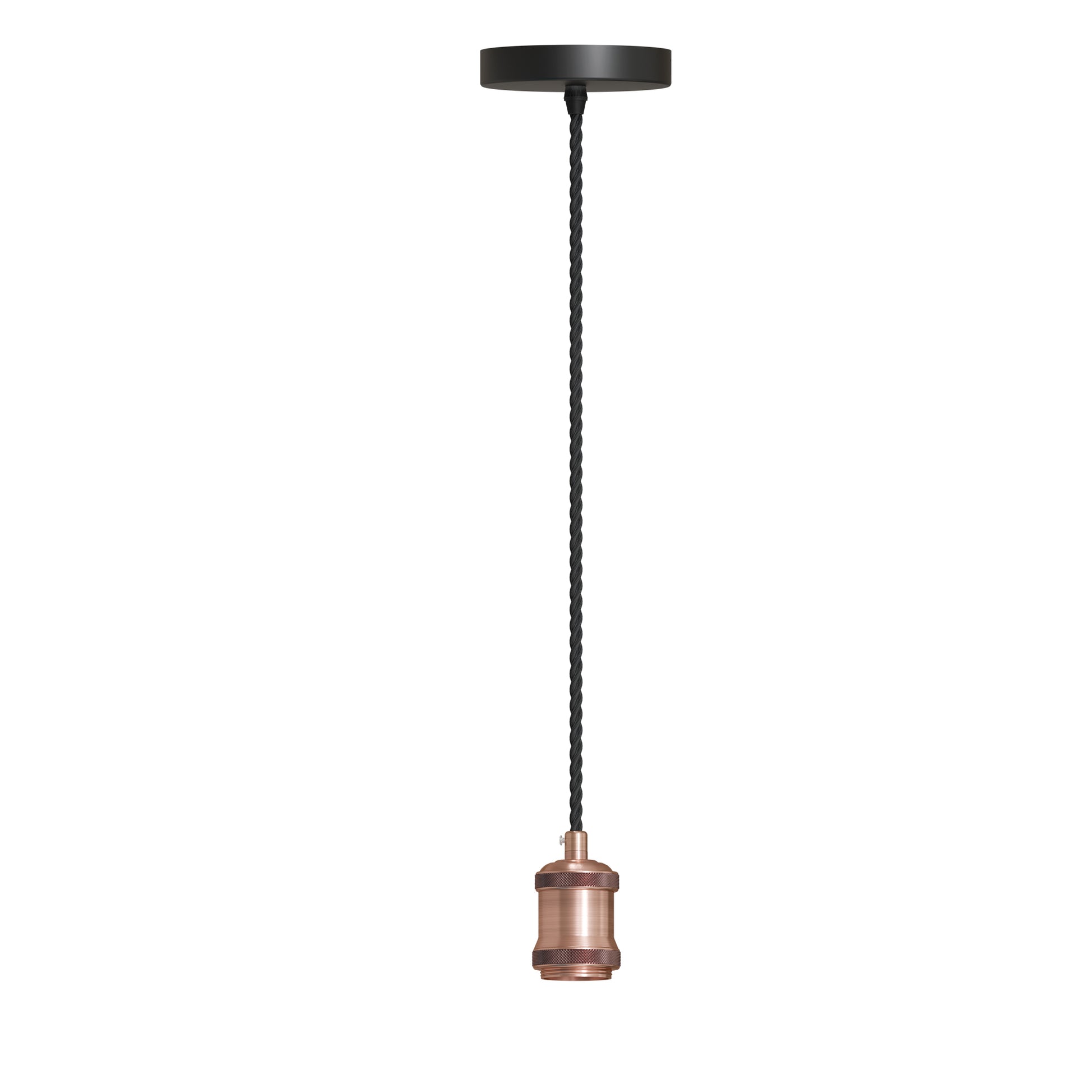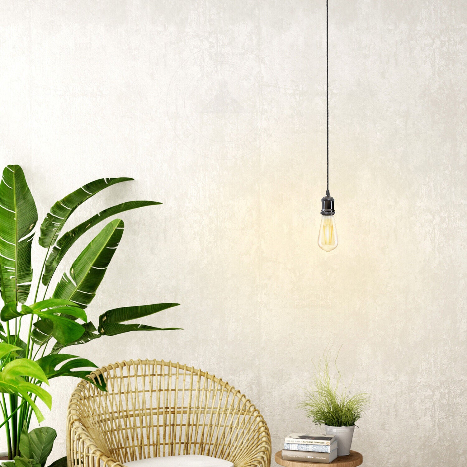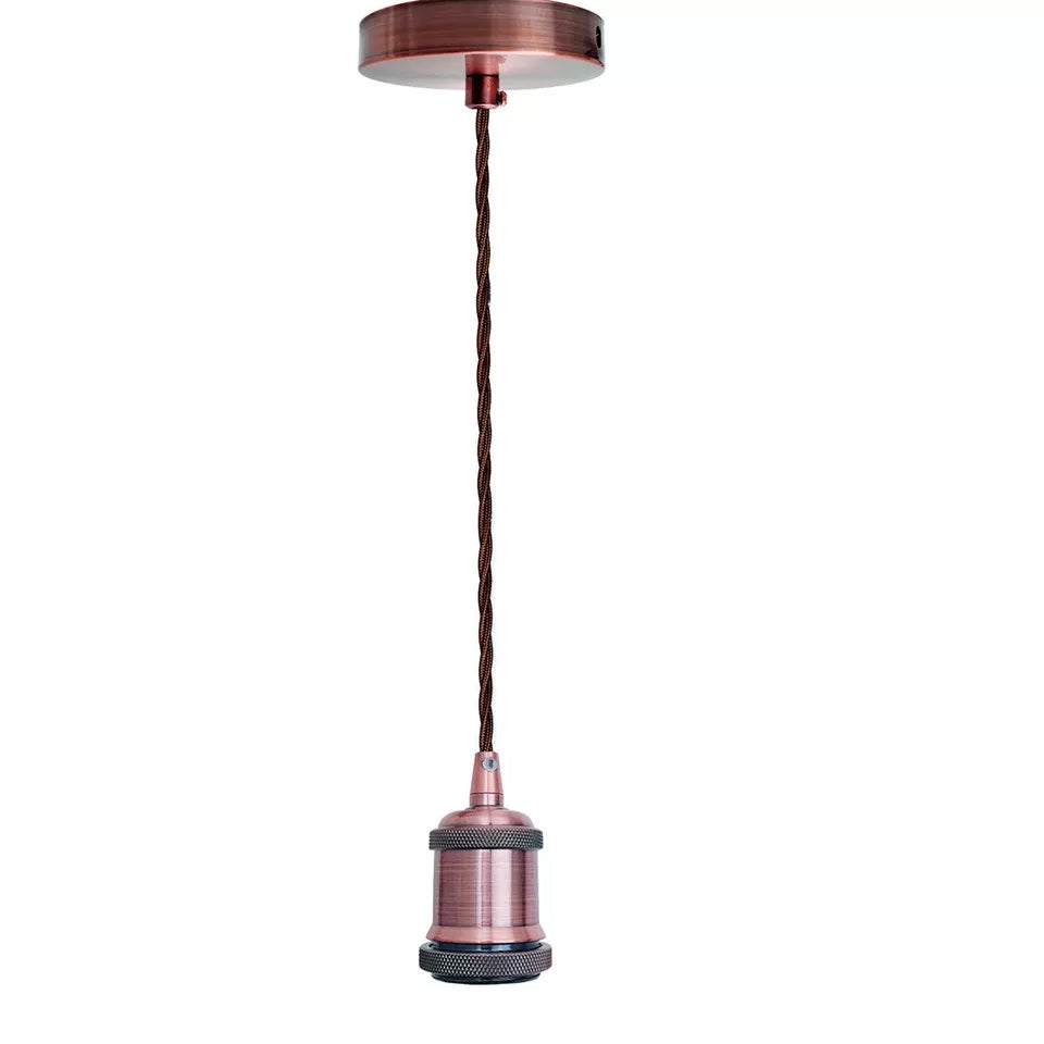 - 1x Hanglampset (vintage, hoog gepolijste lampenhouder met 1 m 3-aderige gedraaide stoffen kabel, 1x plafondrozet met accessoires) De lamp is niet inbegrepen.