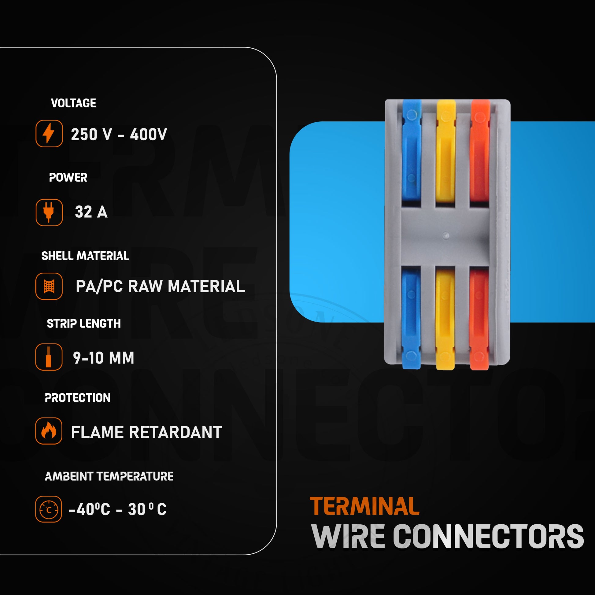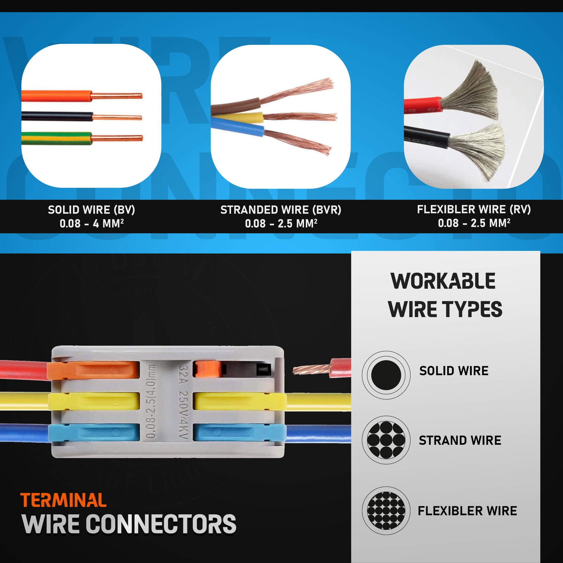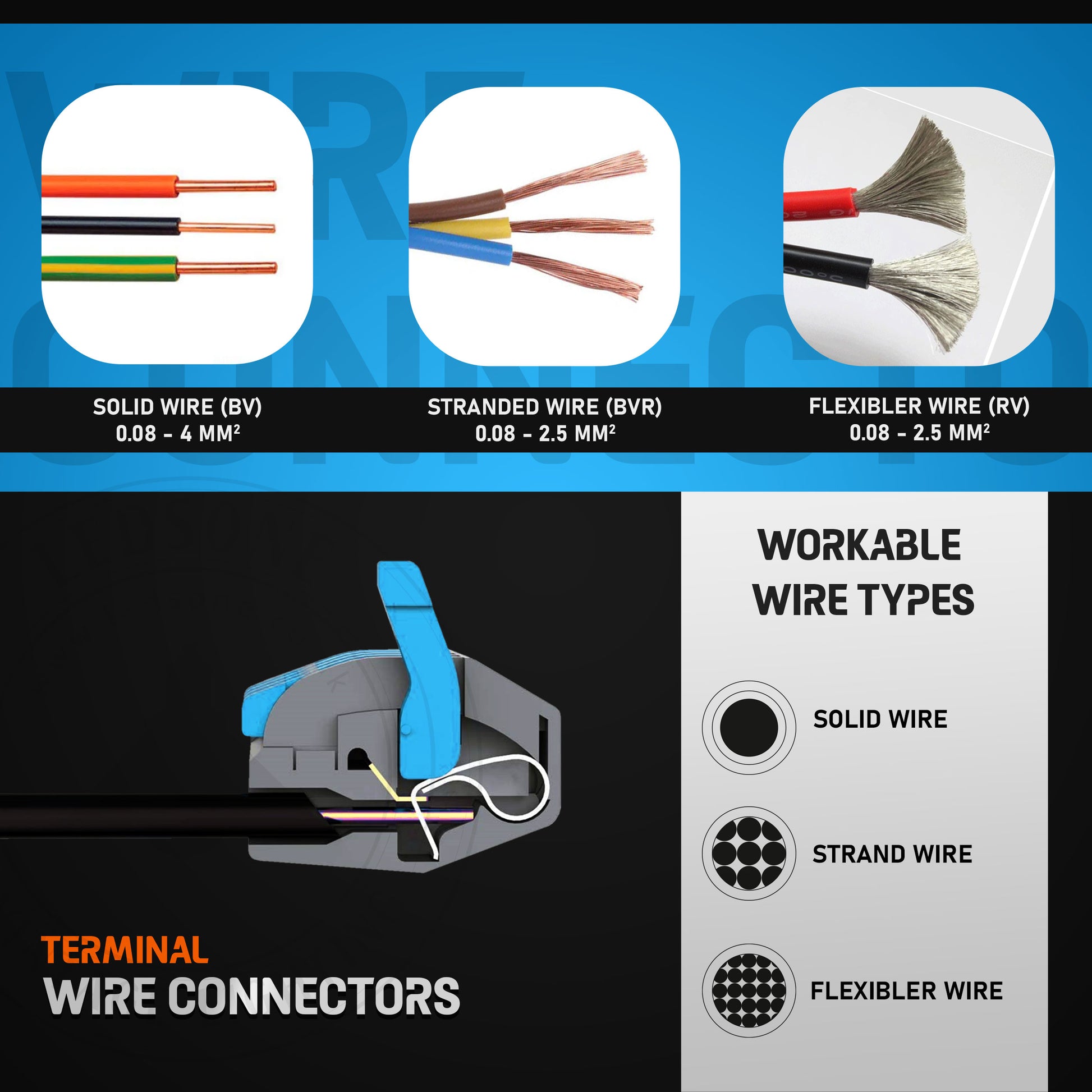 - Deze hefboommoerconnectoren zijn geschikt voor zachte en harde draad.