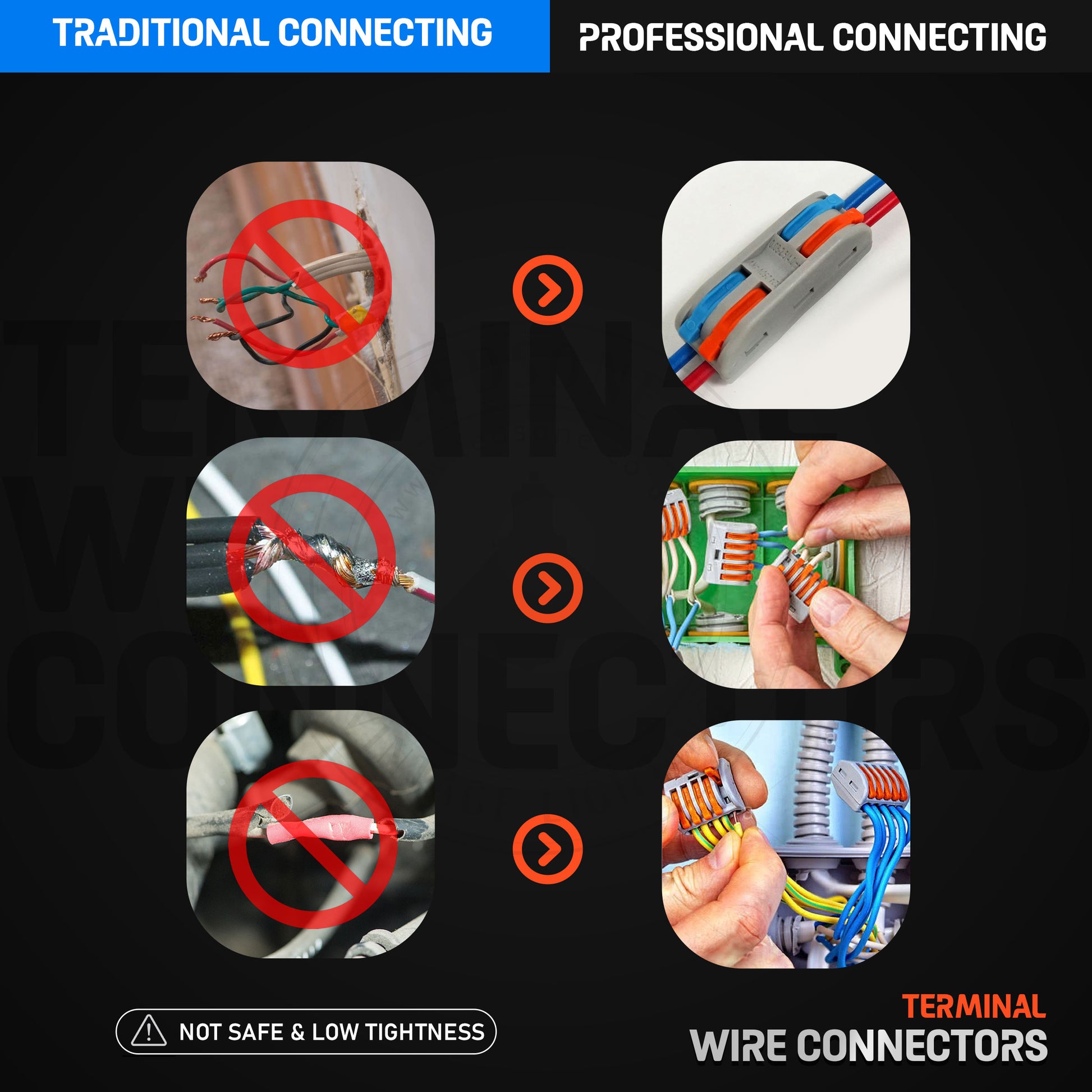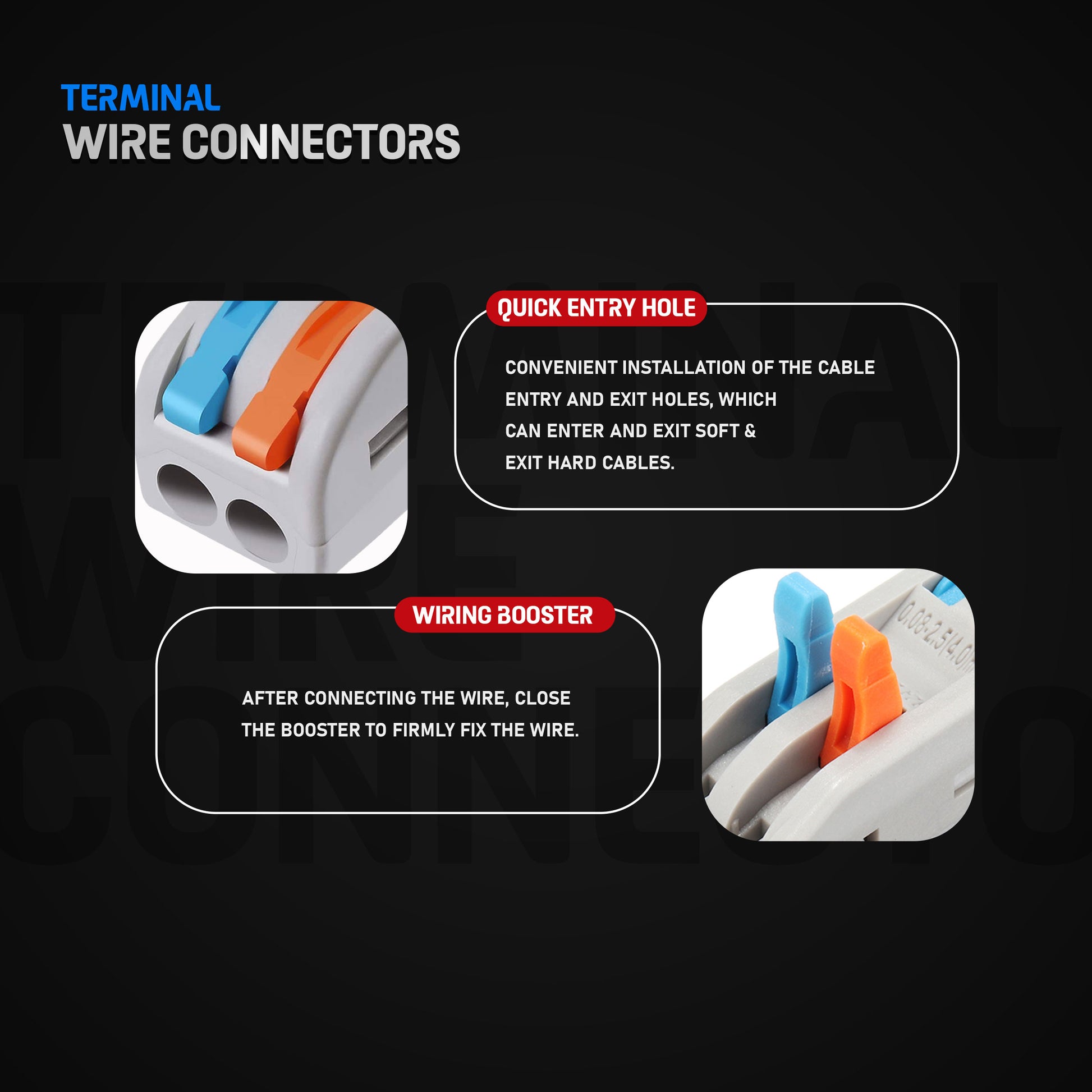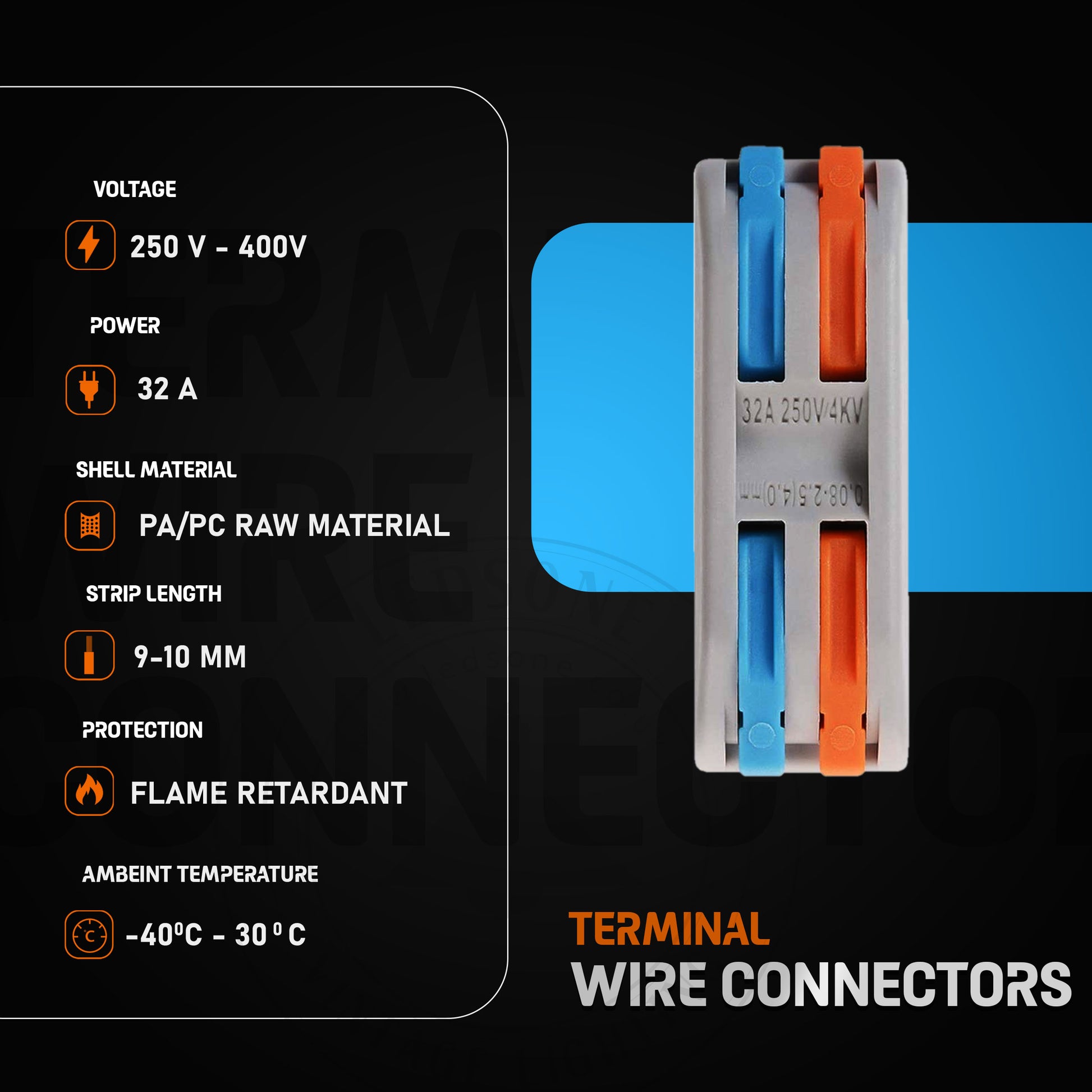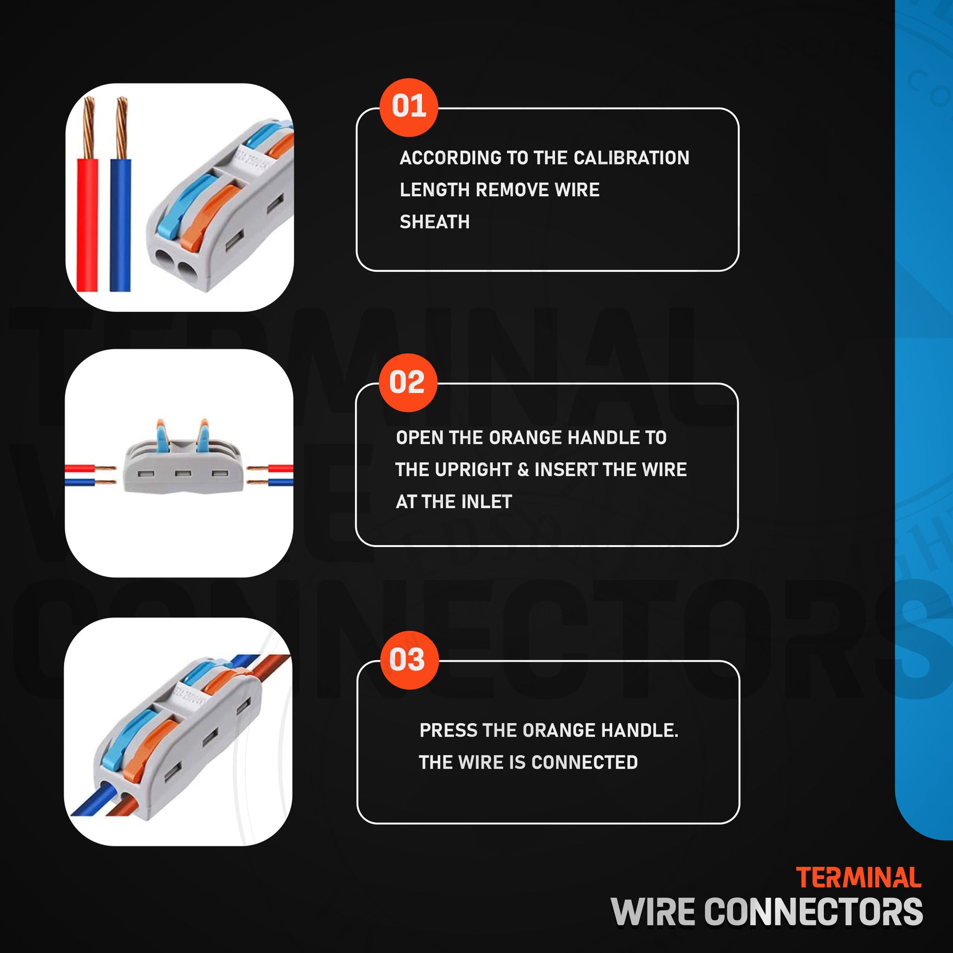 - Deze hefboommoerconnectoren zijn geschikt voor zachte en harde draad.