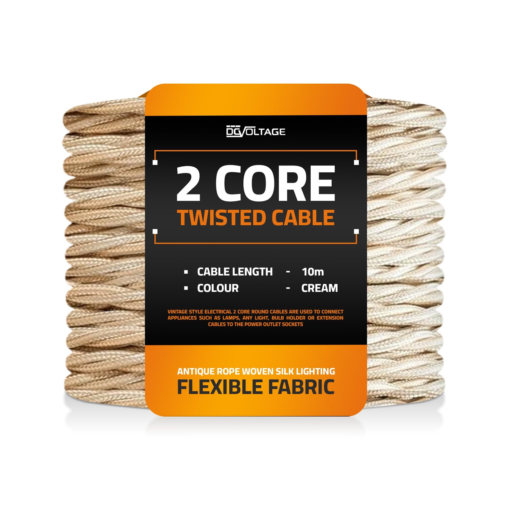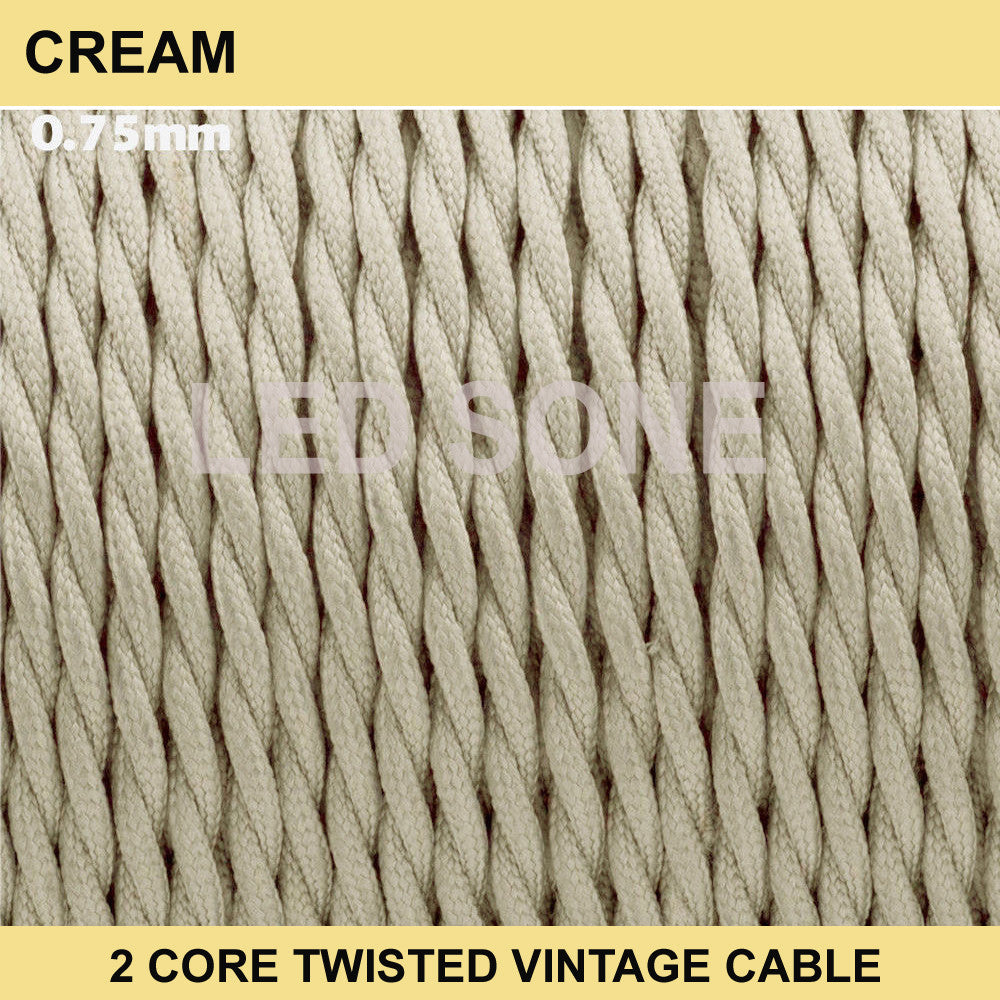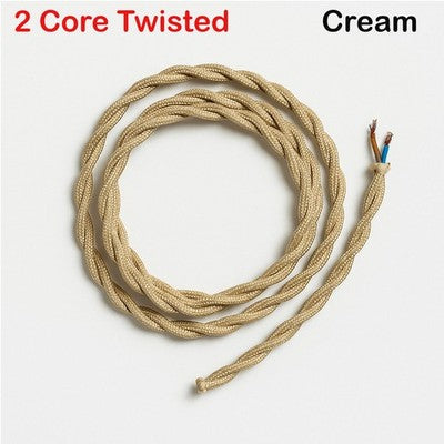 1m/5m/10m 2-aderige gedraaide elektrische kabel crèmekleurige stof~3016