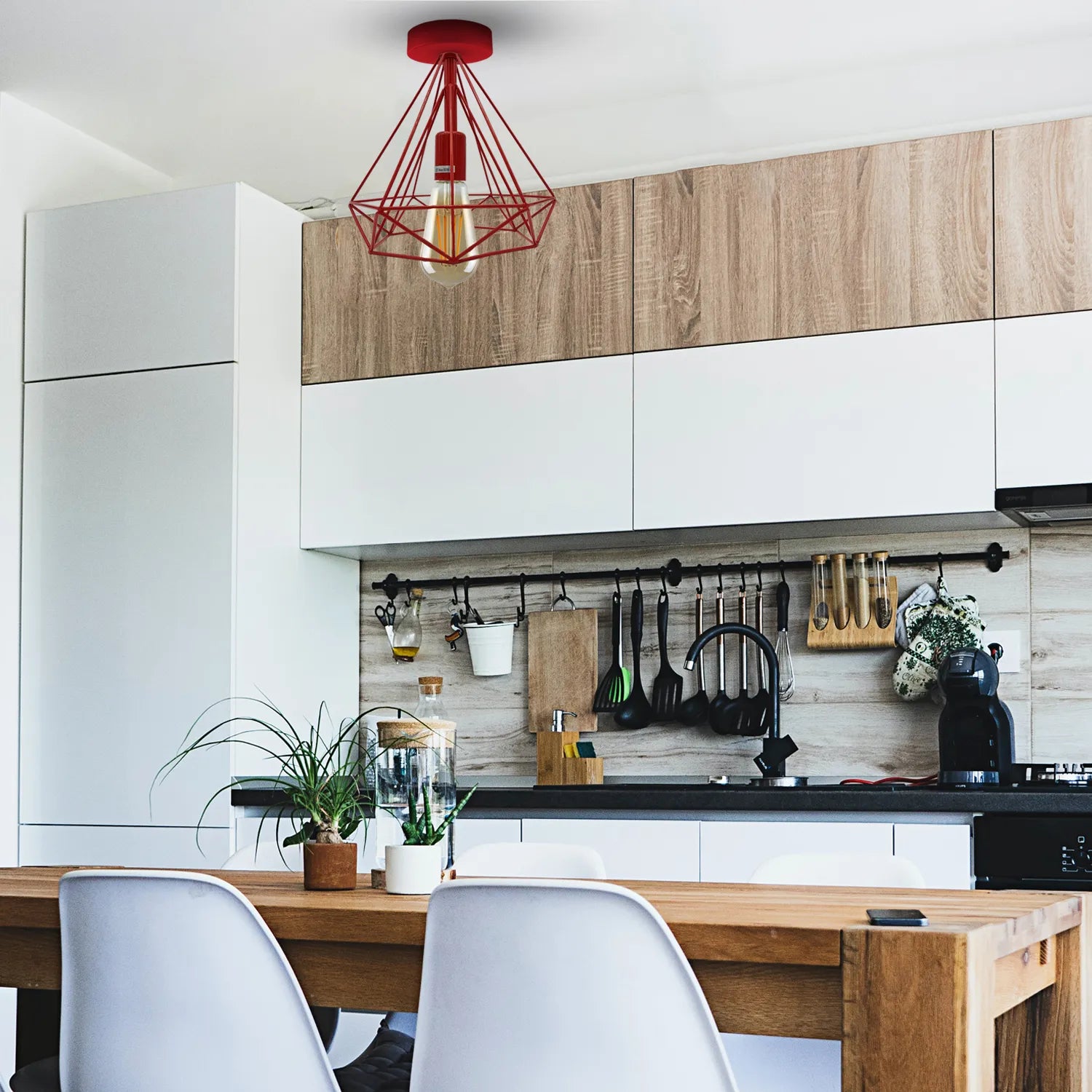 - Dankzij het open kooiontwerp aan de onderkant is de lamp eenvoudig te installeren.