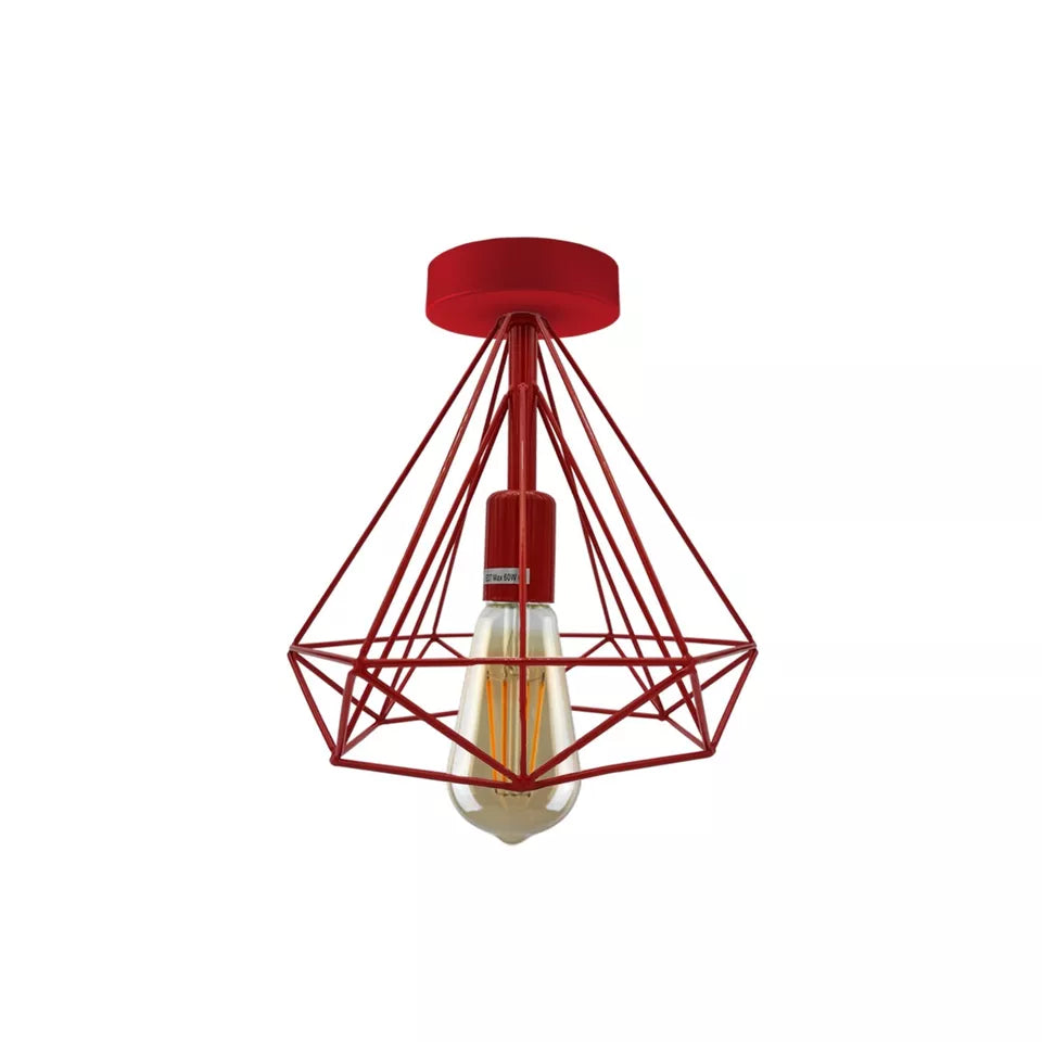 - Deze eenvoudige, retro-stijl plafondlamp in metalen kooivorm fleurt uw leefruimte op.