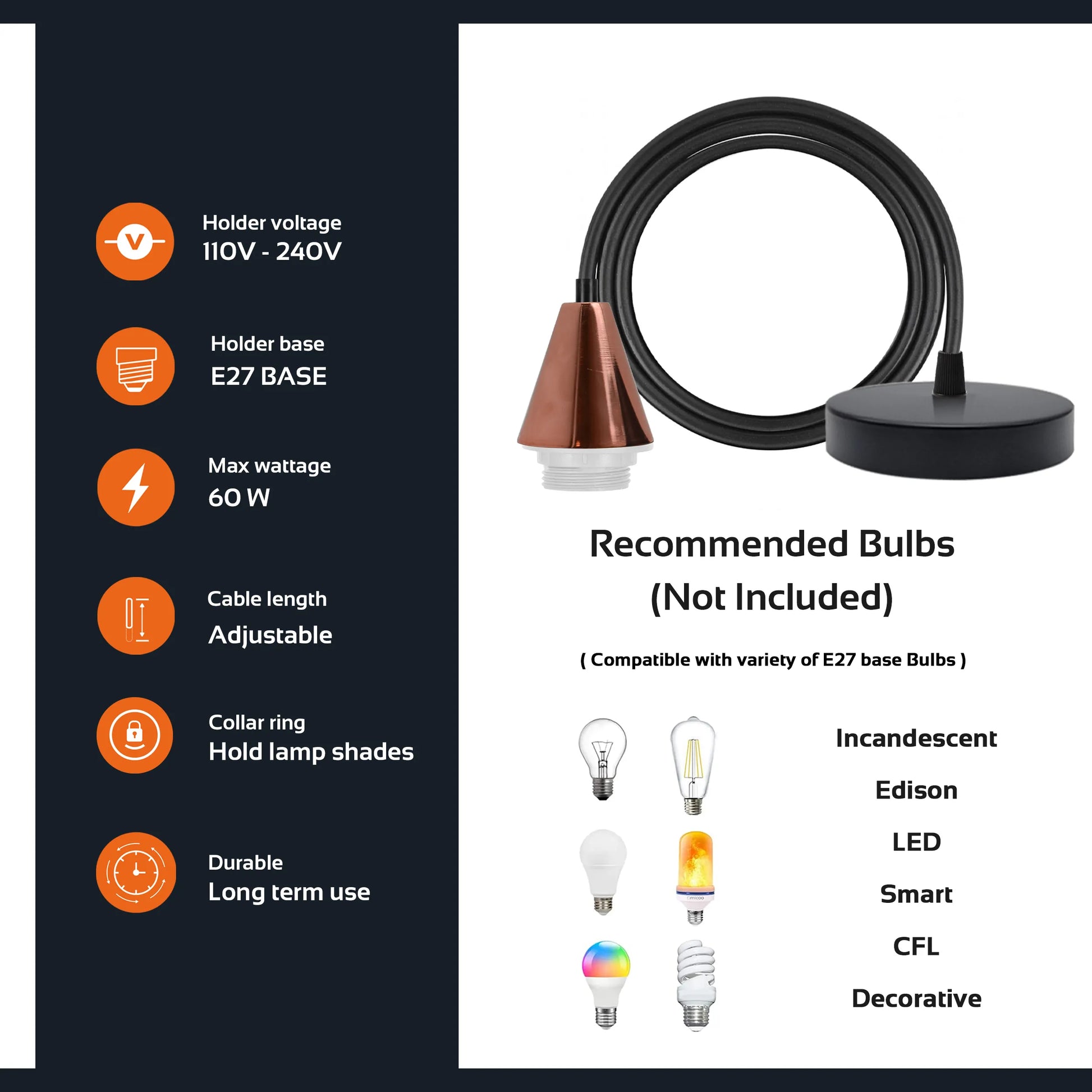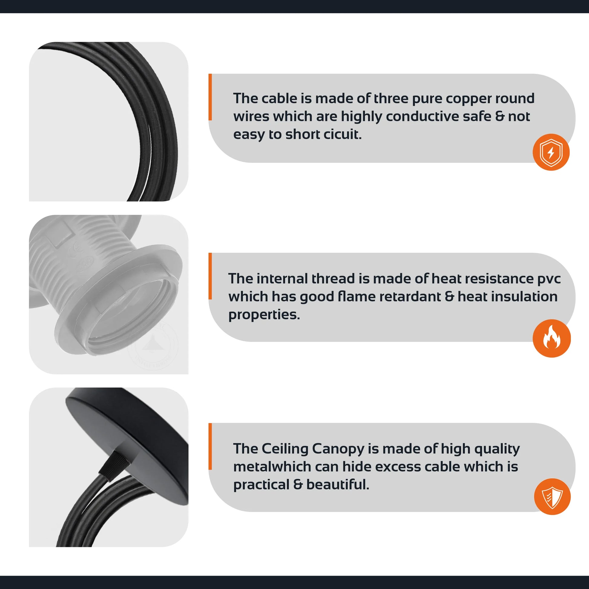 - 2 x E27 Conushouder zwarte kleur PVC kabel 1m pendelset.