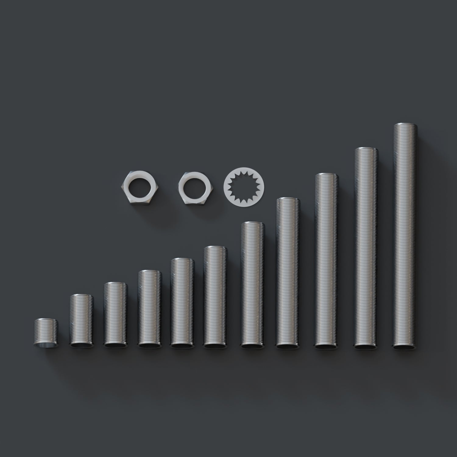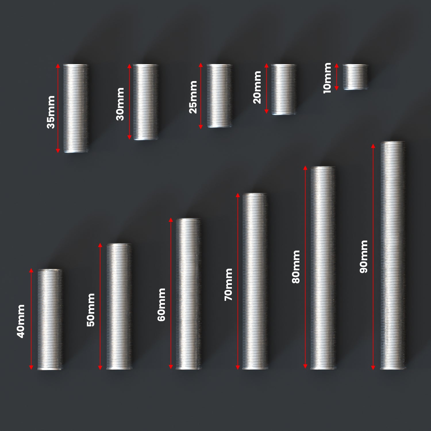- Met deze M10 holle staaf met alle schroefdraad kunt u M10-gloeilampfittingen aan uw lamp bevestigen en tevens elektrische kabels naar de lampfitting doorvoeren.