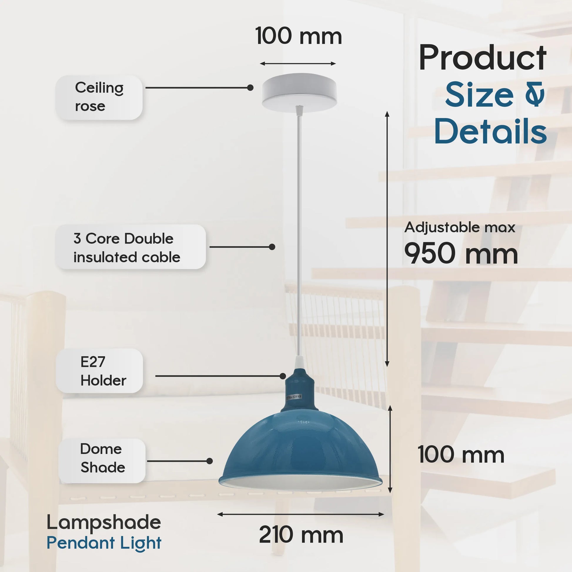 - Wordt geleverd met een standaard E27 Edison-lampfitting.