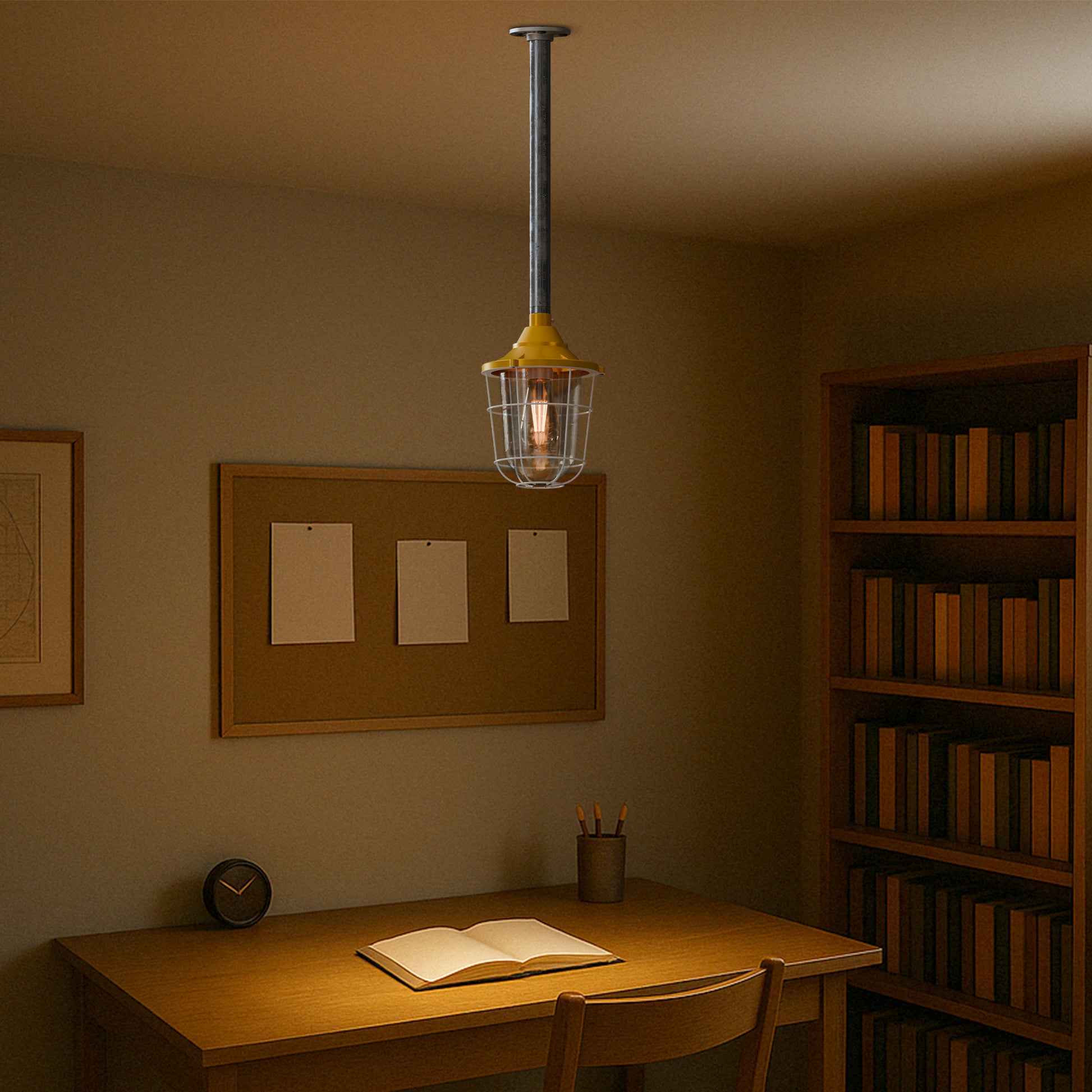 - Industrial-style pendant light with a rugged and professional look.
