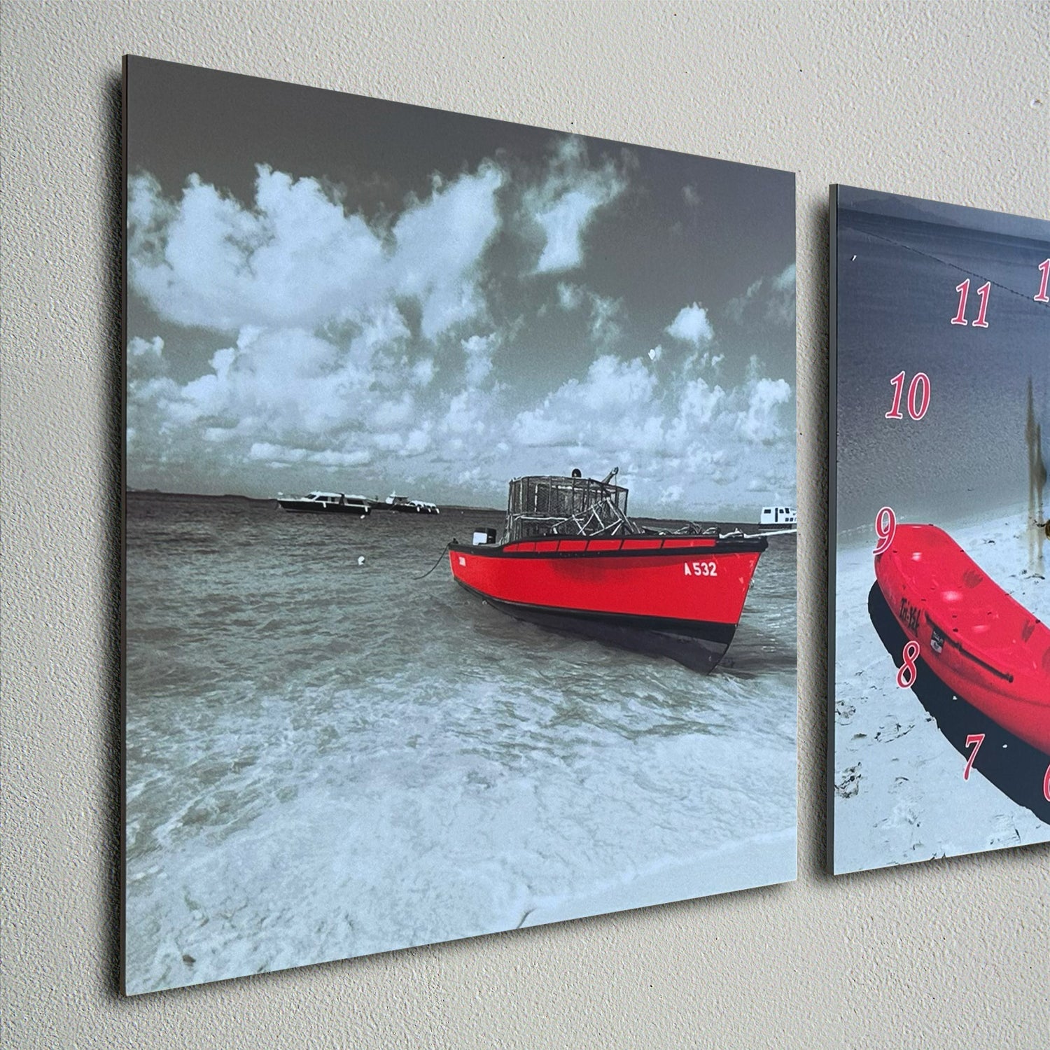 - De rode bootframeklok heeft een strak en glanzend oppervlak met een klein gaatje voor de versnellingsknop voor aanpassing en vereist een koolstofbatterij (niet inbegrepen)