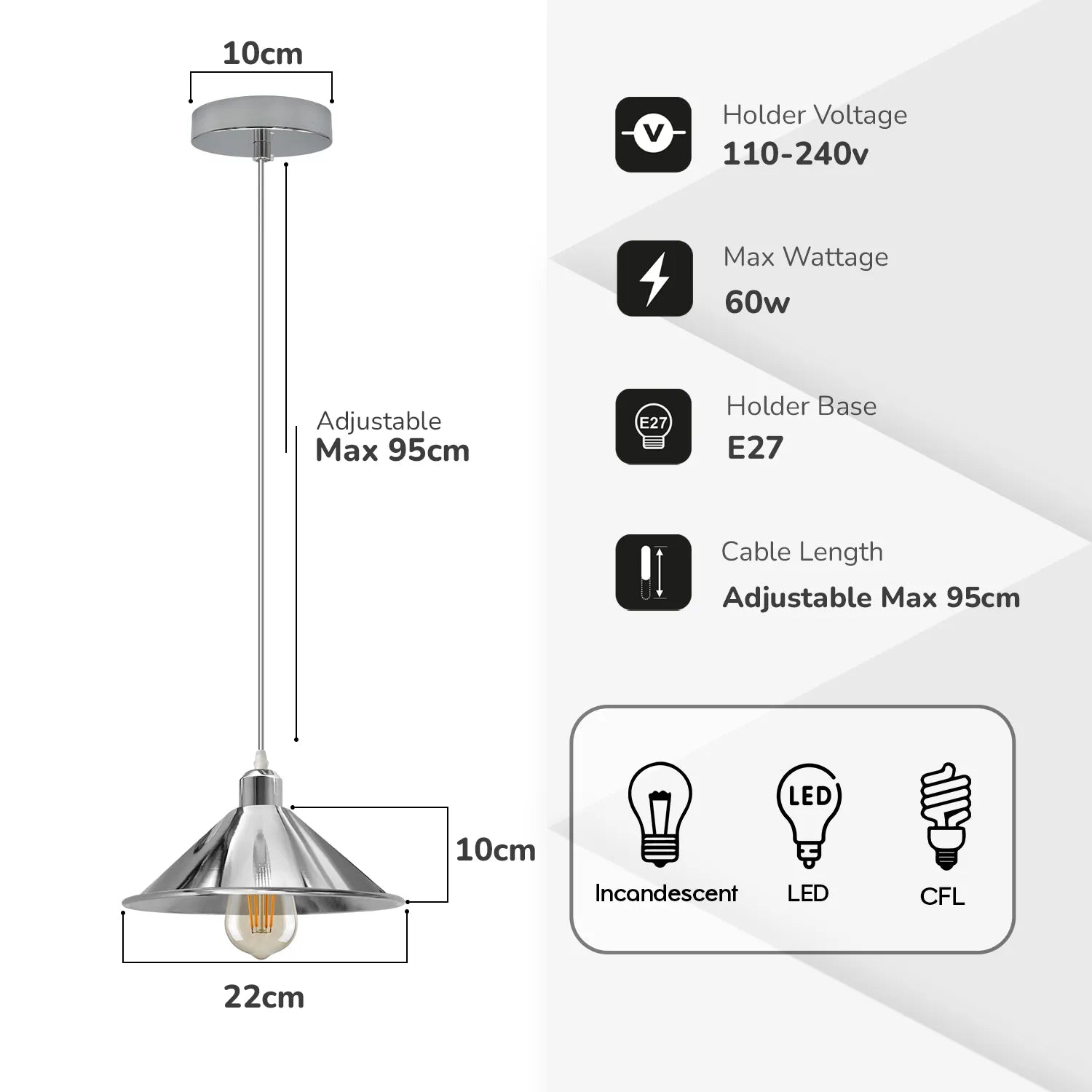 - Diameter van de kap: 22 cm
