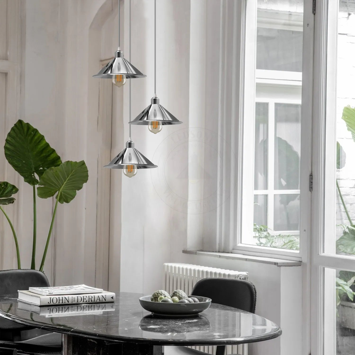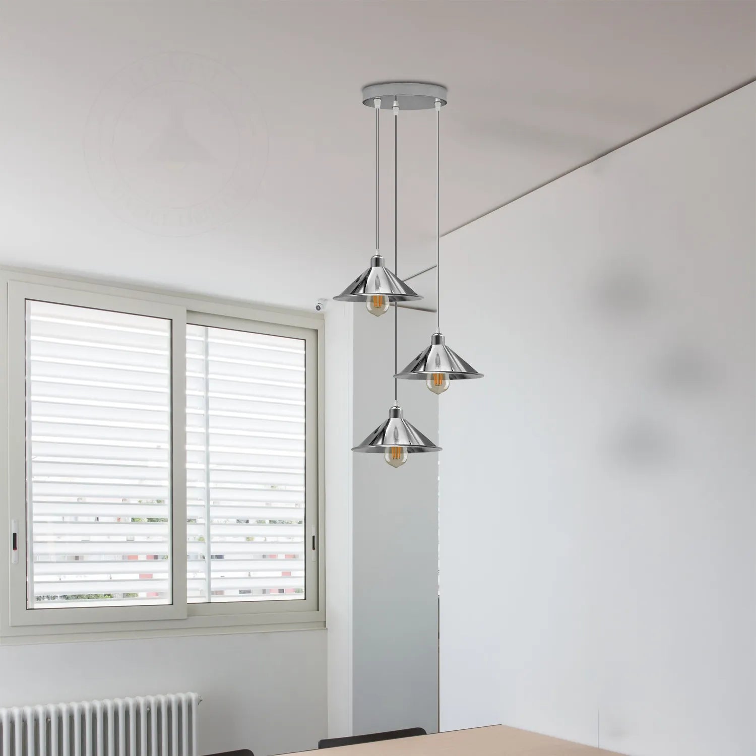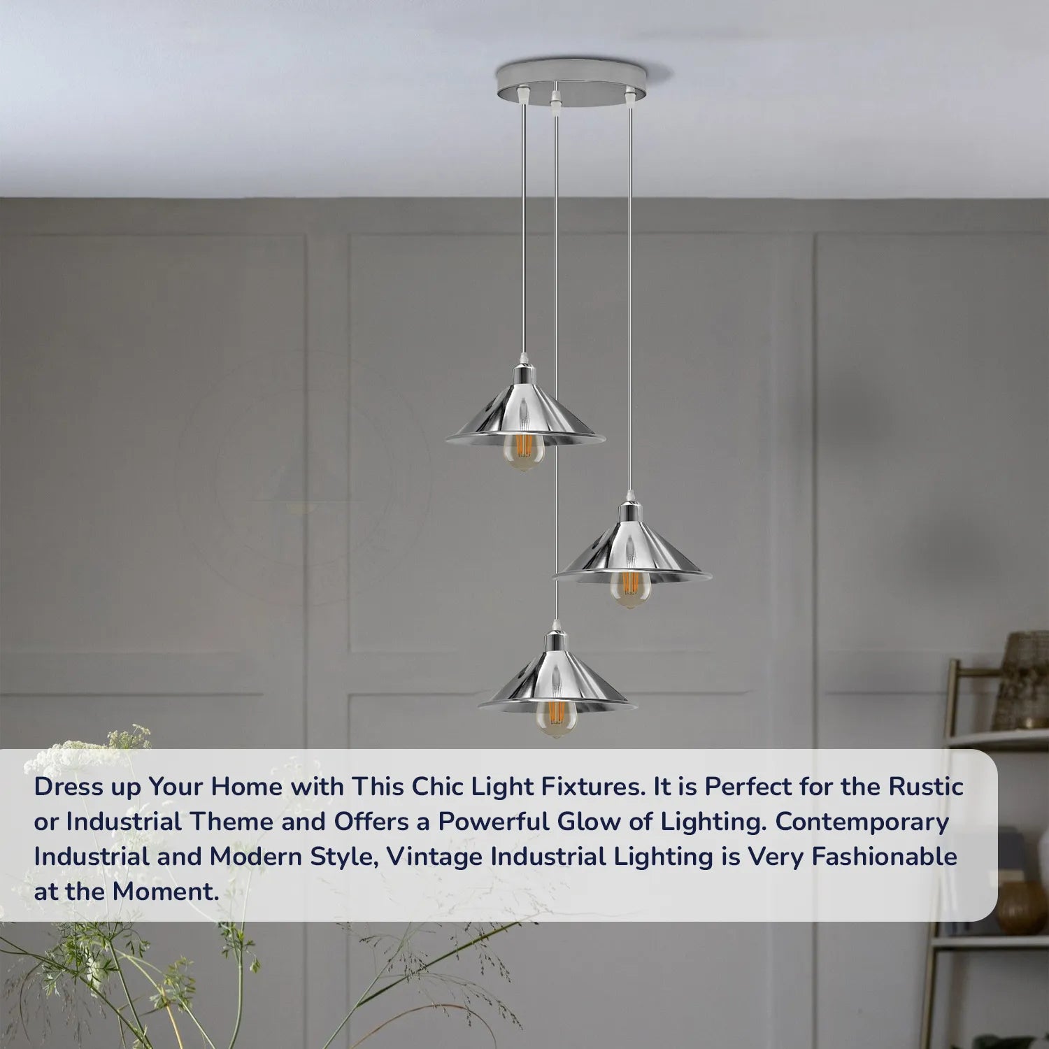 - Ziet er aantrekkelijk en modieus uit in uw bestaande lampenkap. De kegelvormige fitting van de hanglamp schijnt naar beneden en creëert een warme en gezellige sfeer.