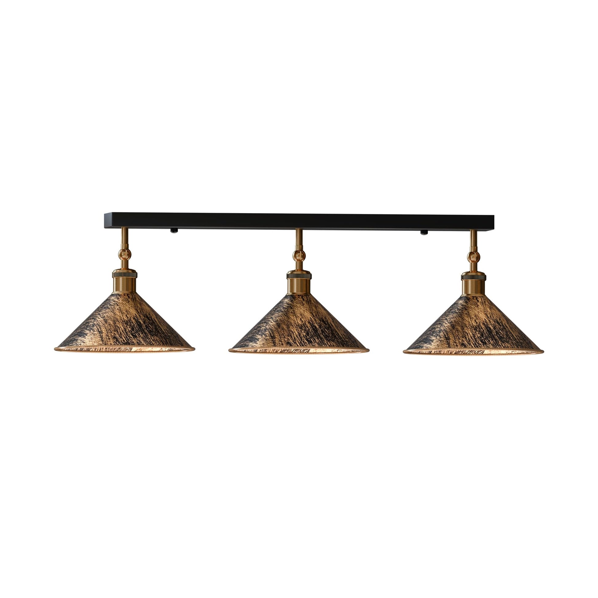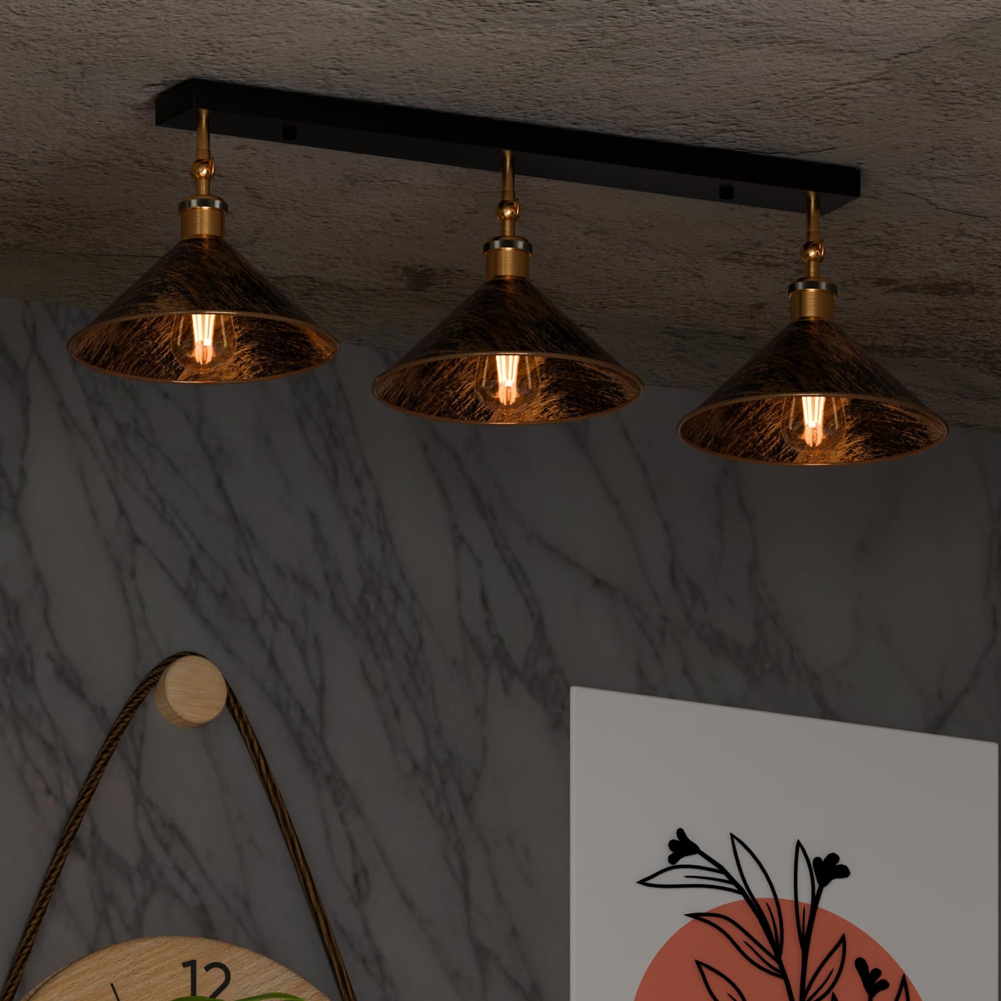 Crafted with a stunning brushed copper finish, this vintage ceiling light fixture brings a warm, inviting glow to any room. The unique design features three adjustable arms, allowing you to direct light exactly where you need it most—whether you are illuminating a kitchen island, brightening a hallway, or setting the mood in a bedroom.