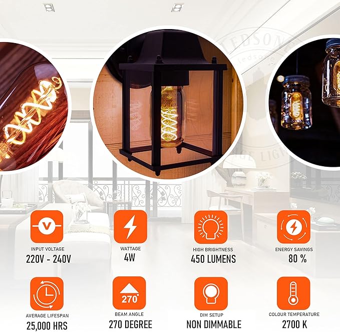 - De speciale gekrulde gloeidraad geeft een zeer warm wit licht, vergelijkbaar met de originele gloeilampen, waardoor uw kamer gezellig en warm aanvoelt.