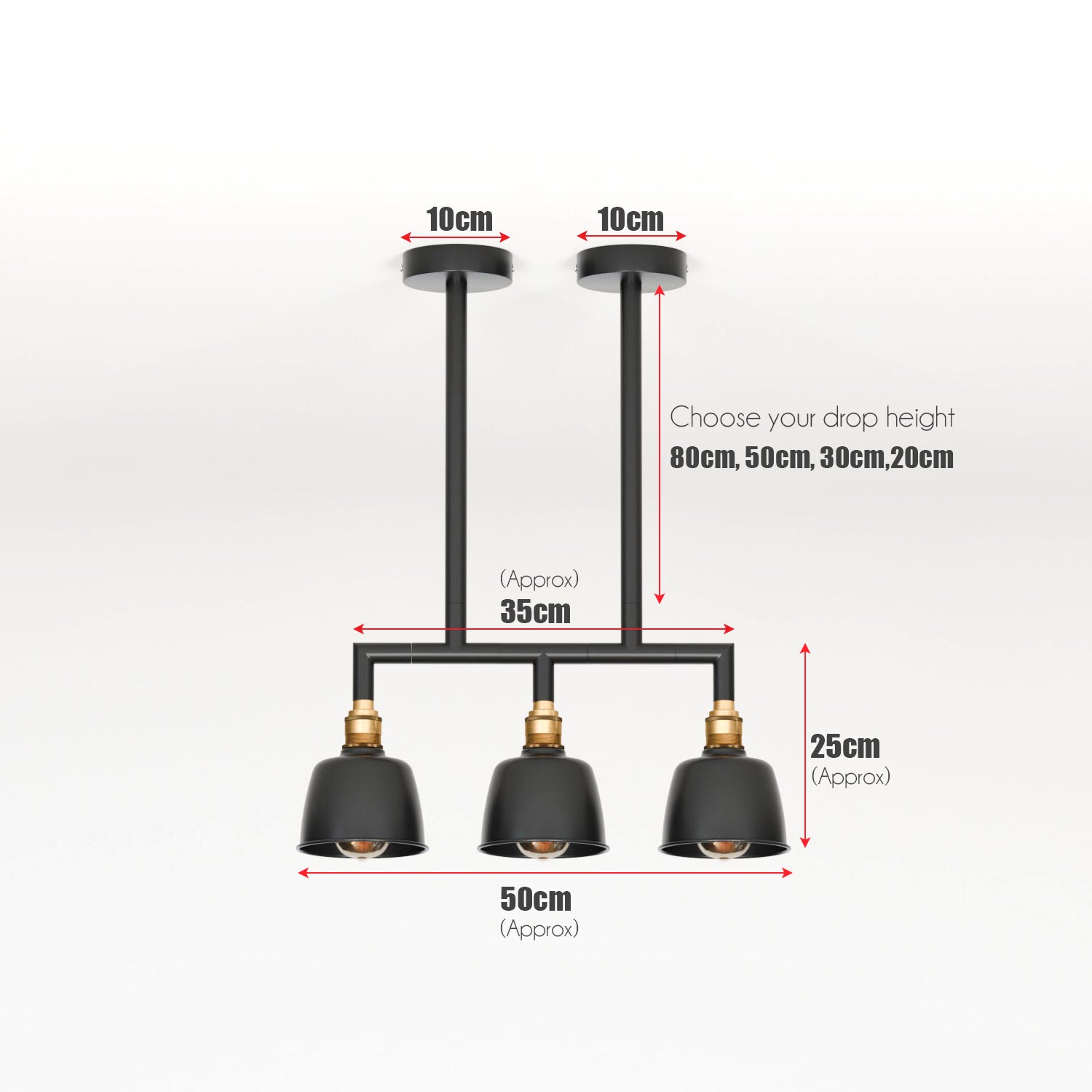 3-weg industriële buis plafondlamp DIY-armatuur - 5638