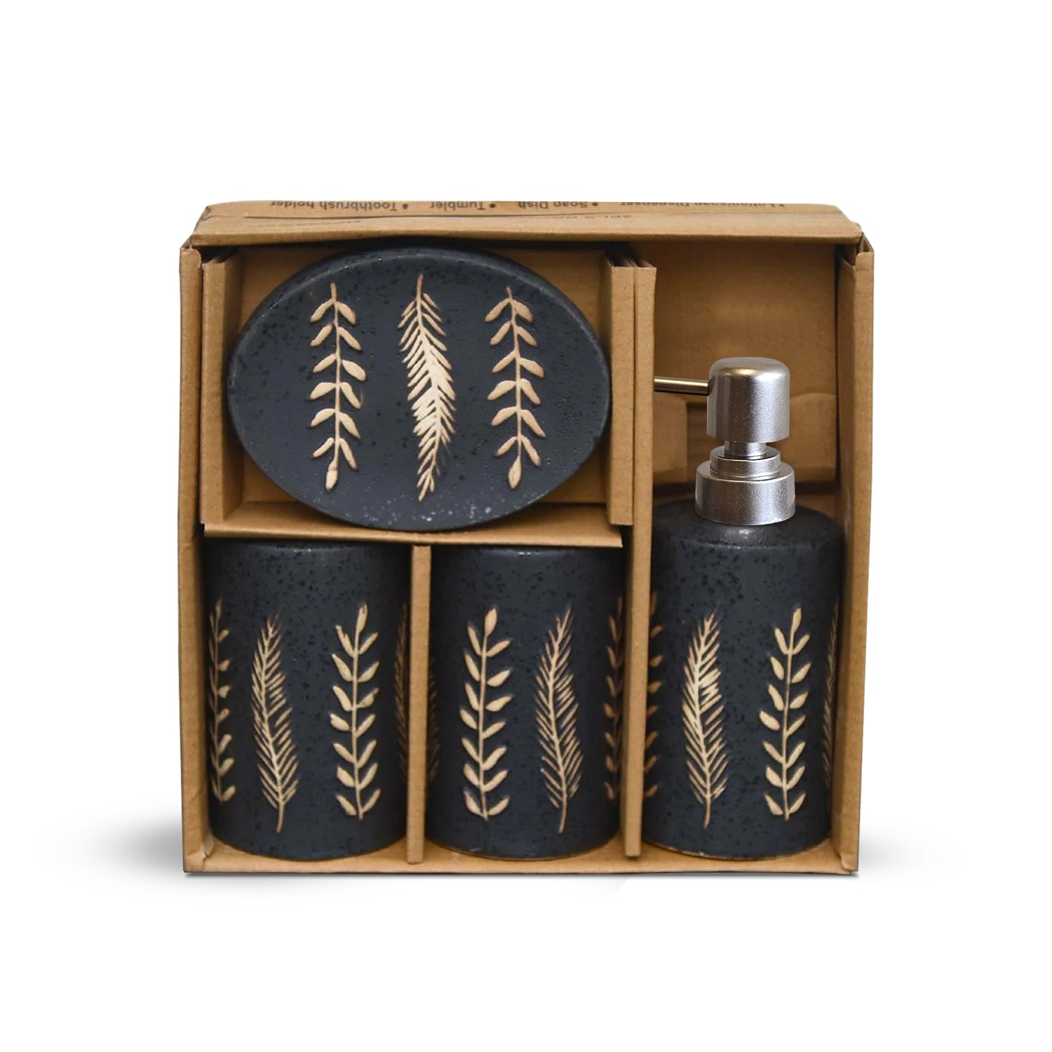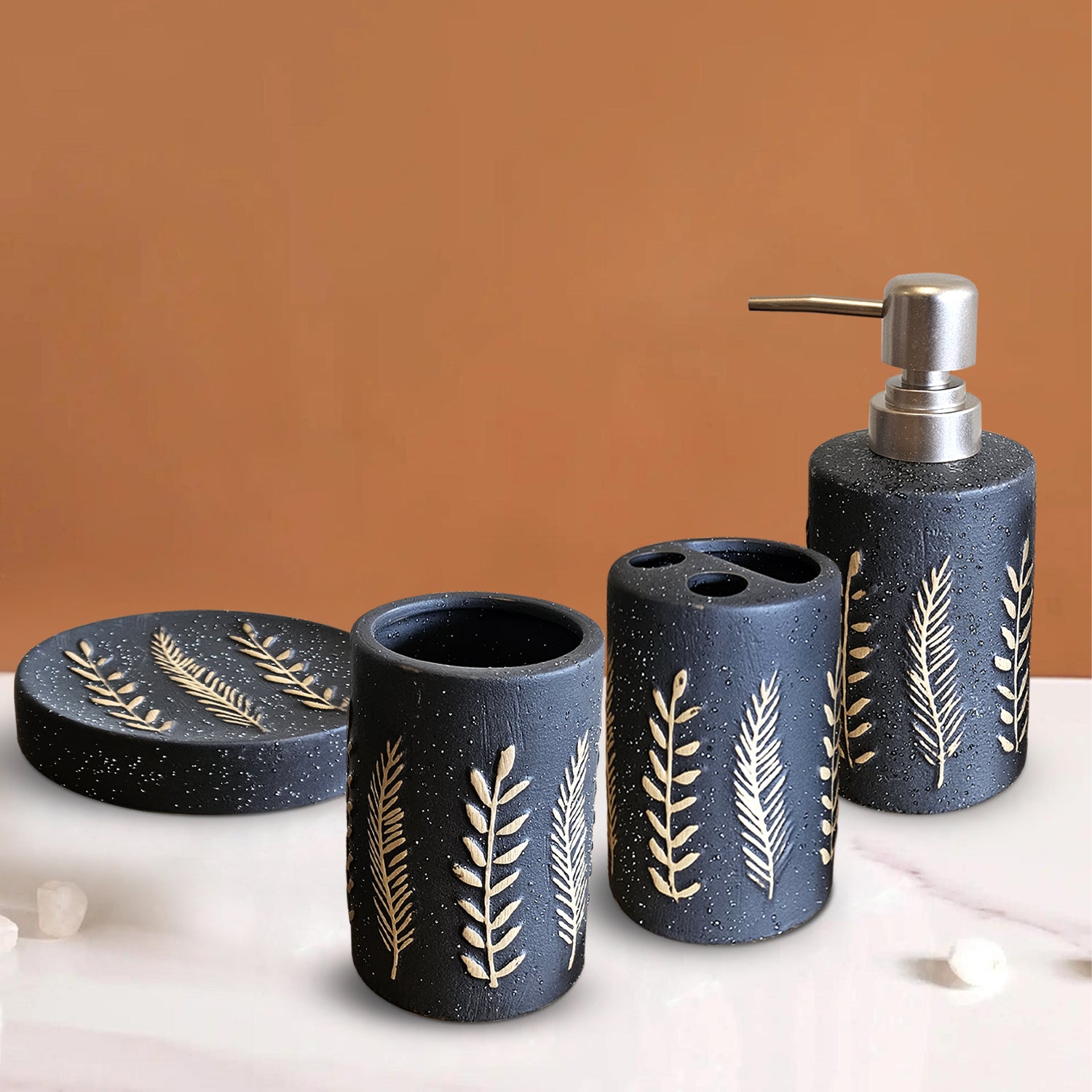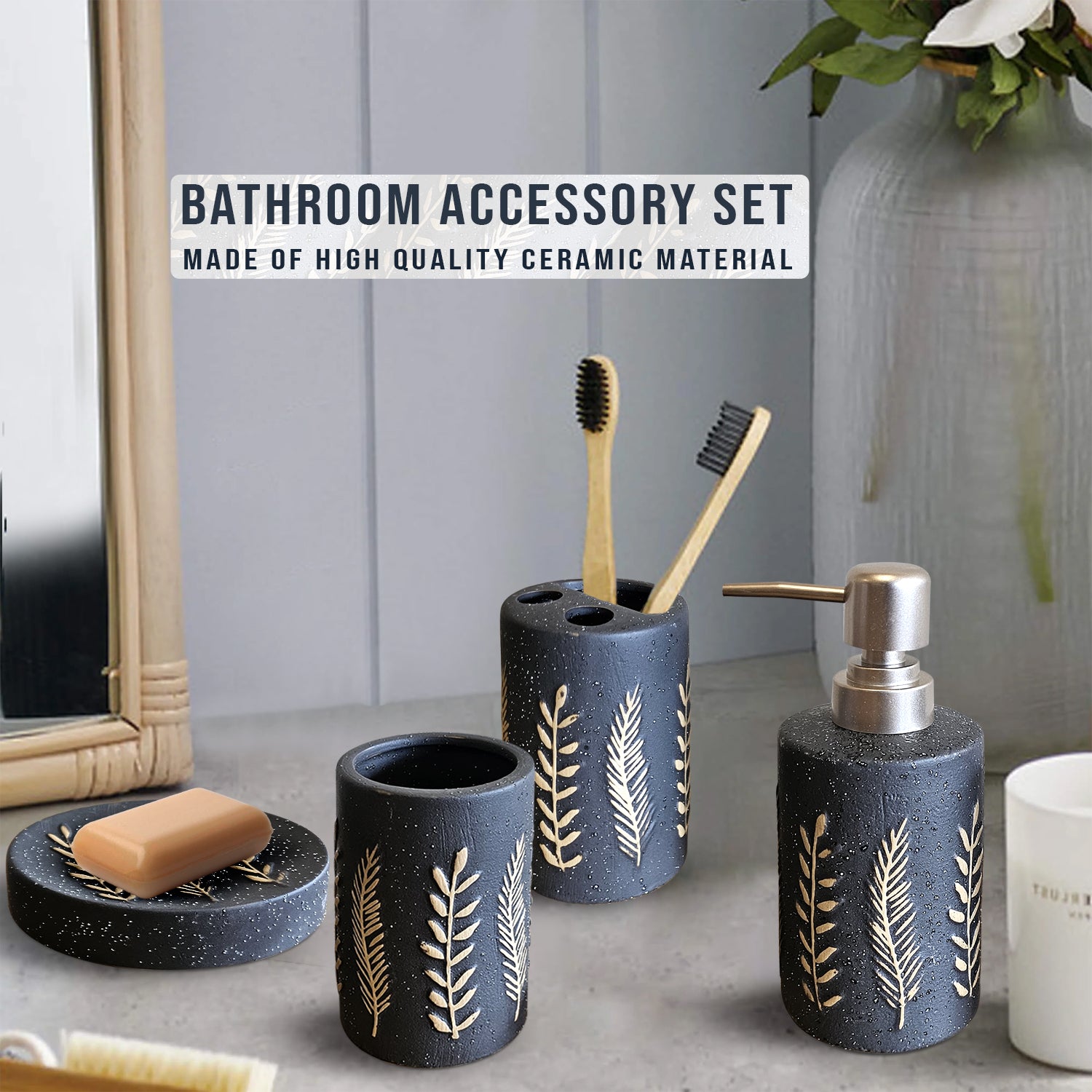 - Deze set bestaat uit een tandenborstelhouder, lotiondispenser, beker en zeepbakje en is een decoratieve toevoeging aan uw badkamer.