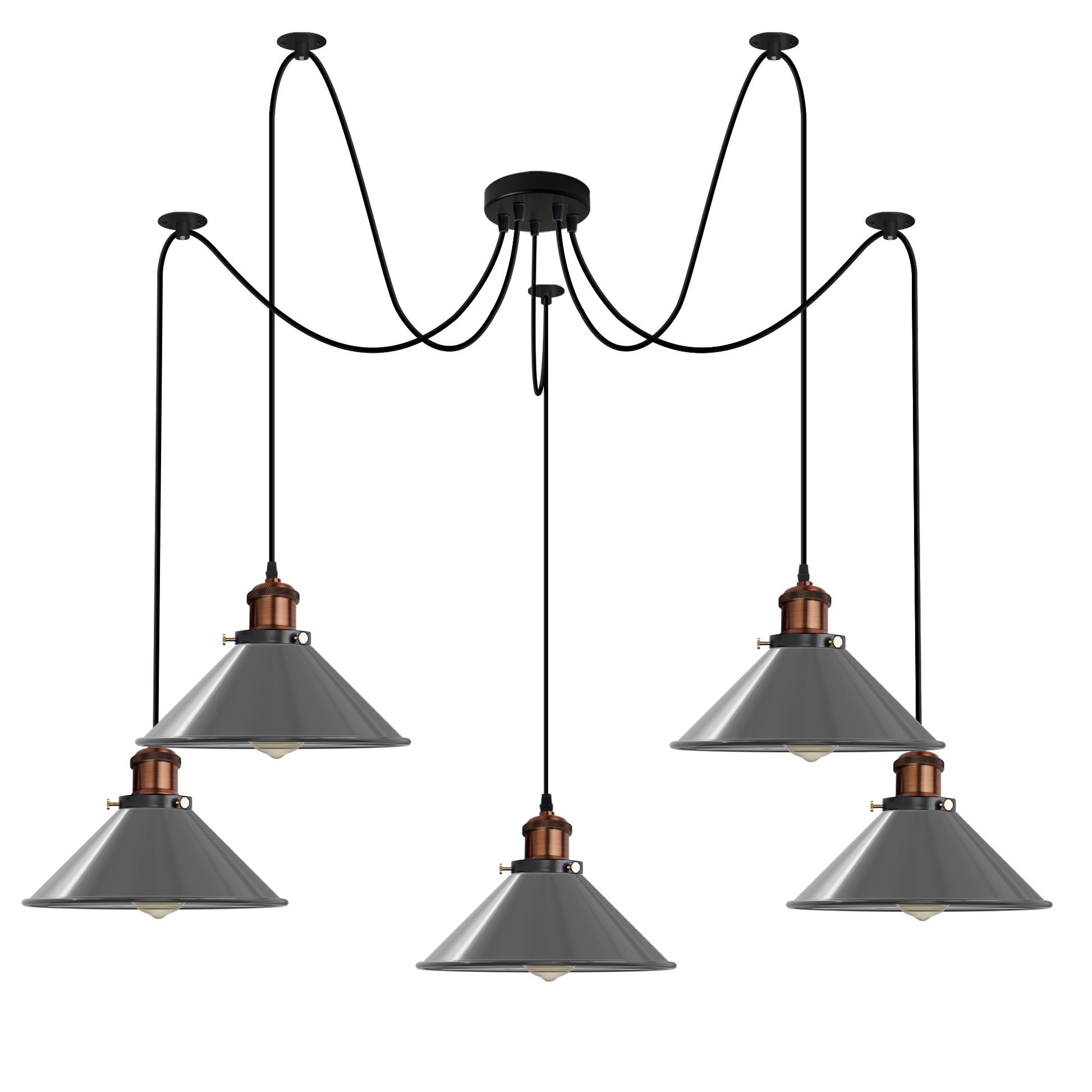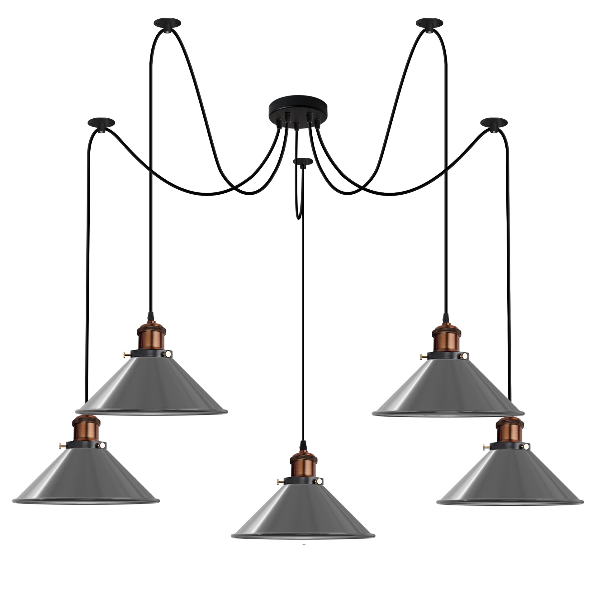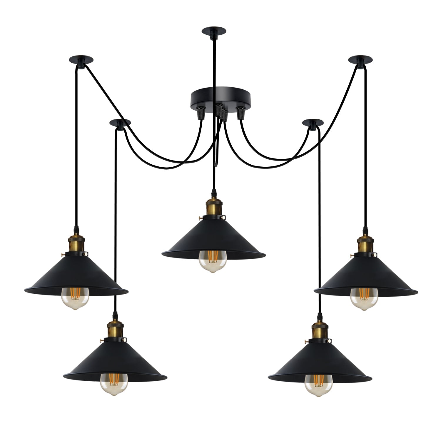 - Creatieve en modieuze industriële vintage hanglamp met 5 standen en een metalen kegelvormige kap. Perfect als interieurdecoratie.