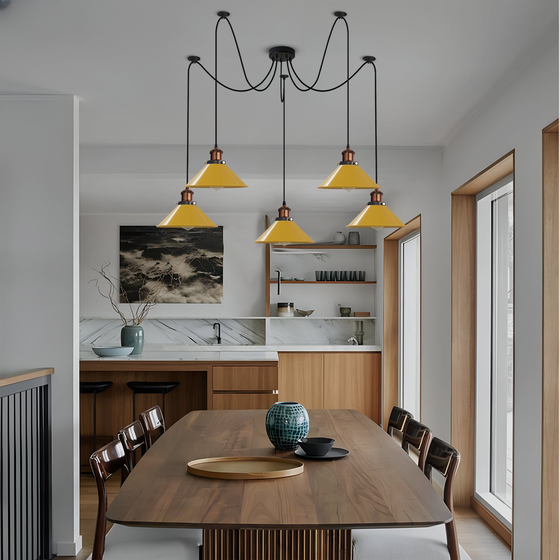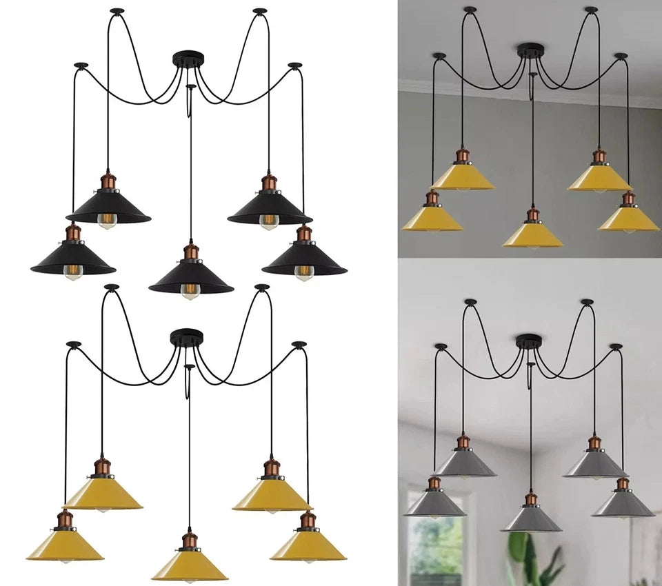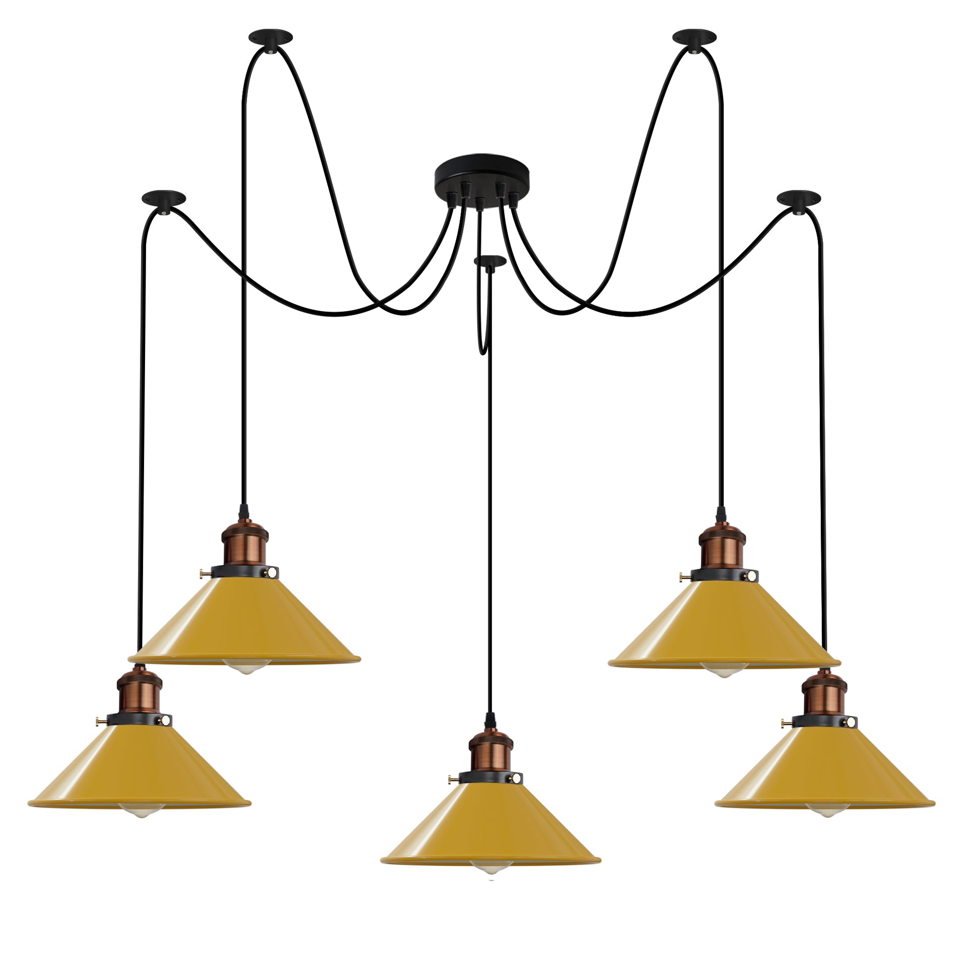 - Creatieve en modieuze industriële vintage hanglamp met 5 standen en een metalen kegelvormige kap. Perfect als interieurdecoratie.