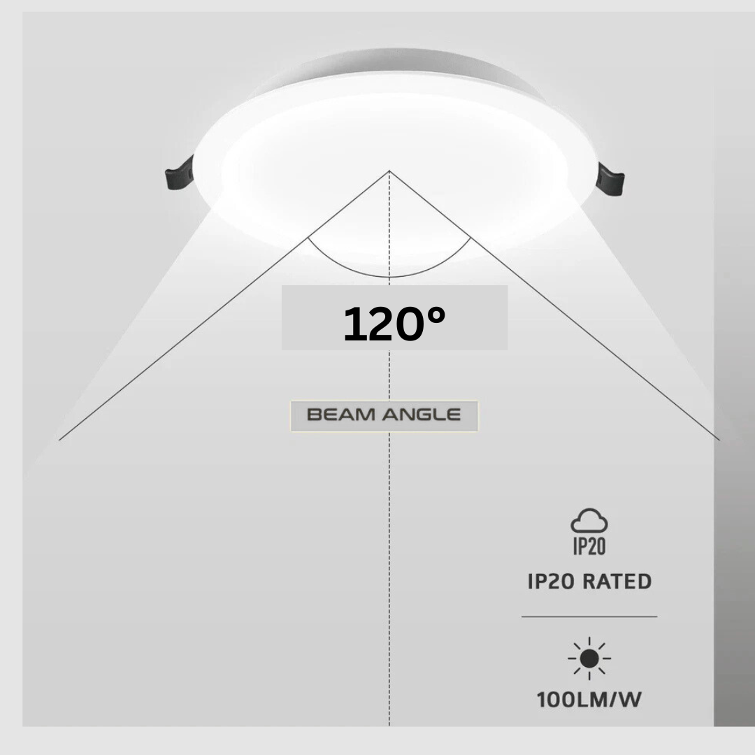 Het strakke en platte ontwerp past naadloos in elk plafond.