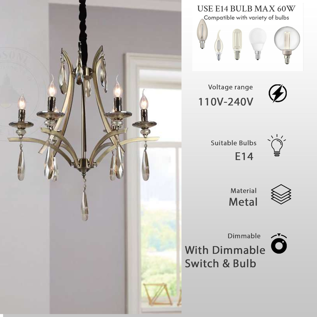 - Deze eigentijdse kristallen kroonluchter voegt verfijning en elegantie toe aan uw eetkamer, woonkamer of slaapkamer.