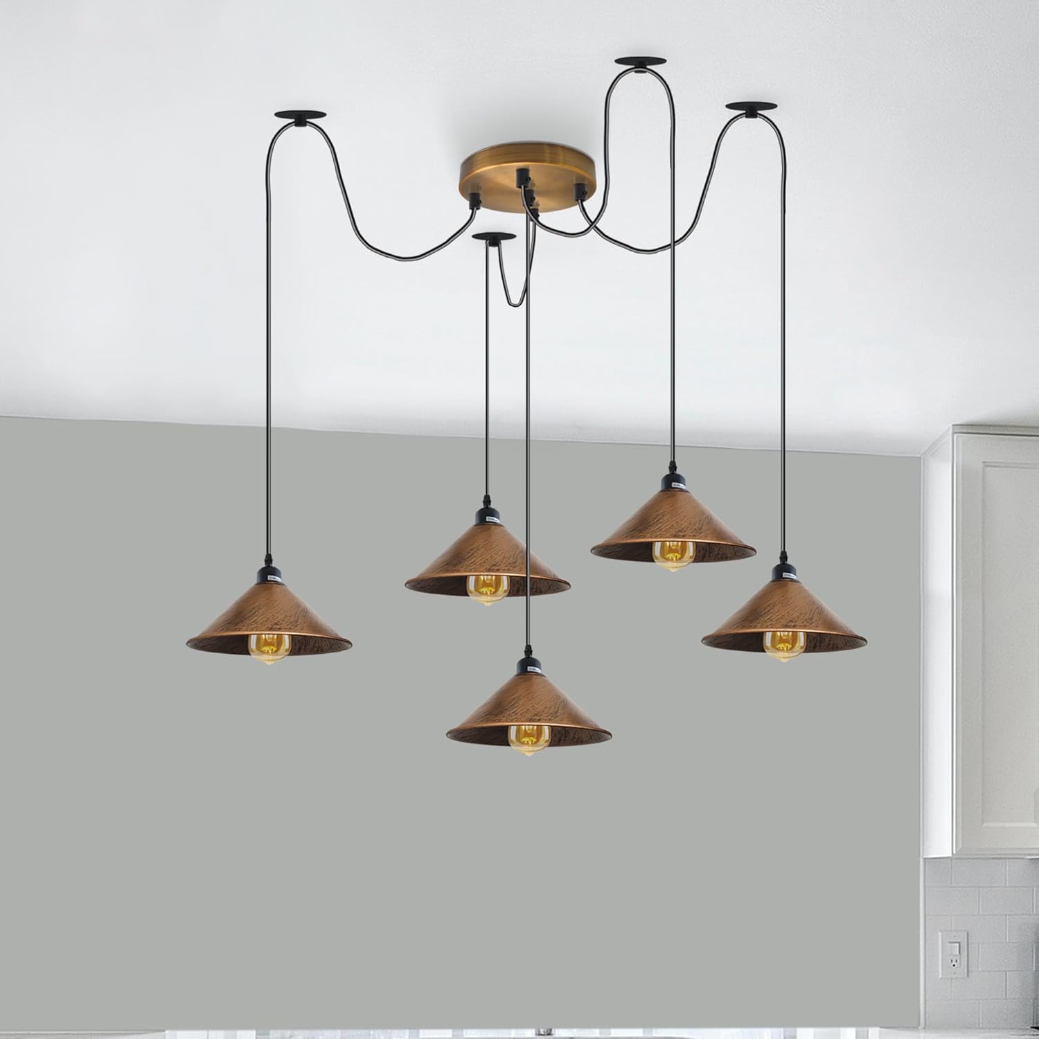 Multi Outlet Drop Pendant Geel Messing Plafondrozet