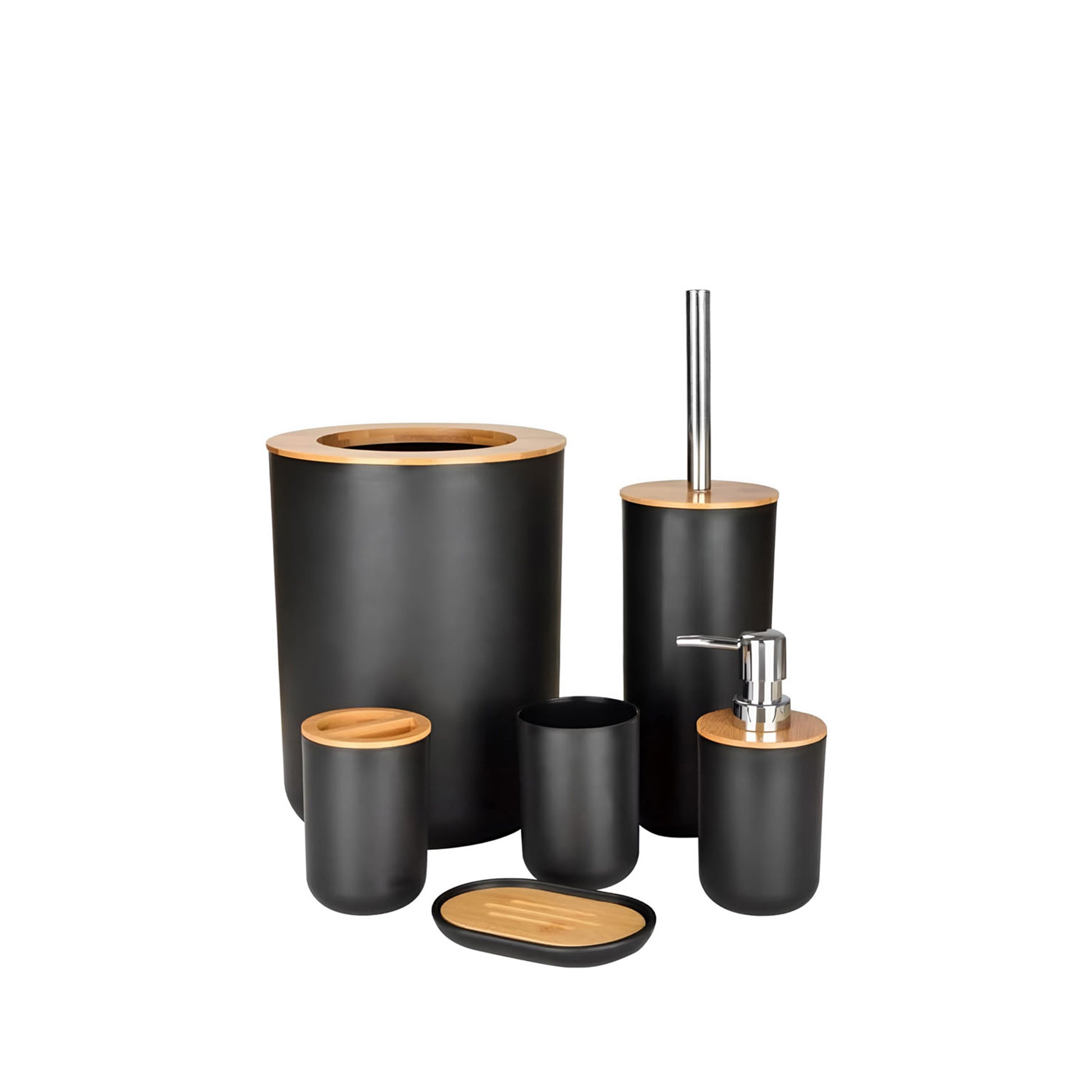 - 1x Bin, Toothbrush Holder,Tumbler, Soap Dispenser, Soap Dish, Storage Cup (6 set)