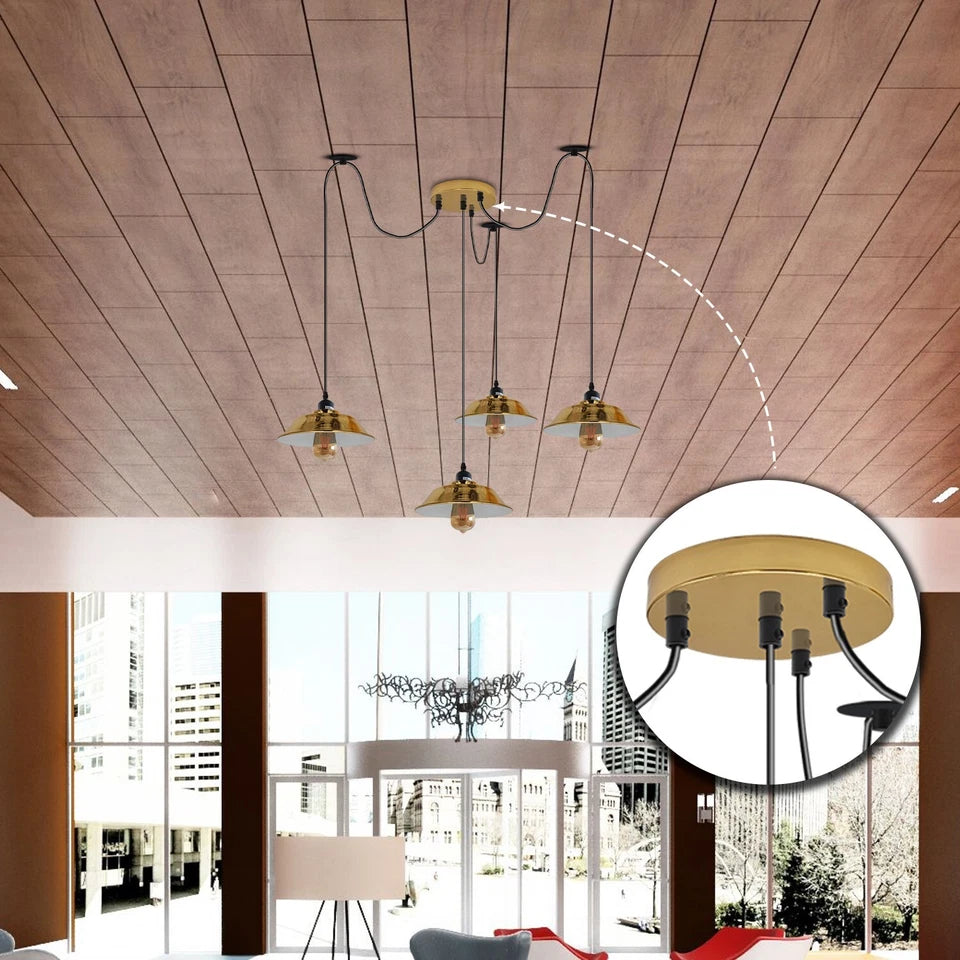 Multi Outlet Drop Pendant Geel Messing Plafondrozet