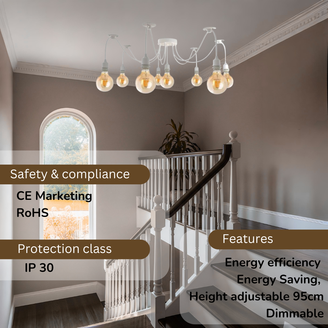 - Afmetingen: Plafondrozetbreedte: 12 cm, elke draadlengte is 95 cm