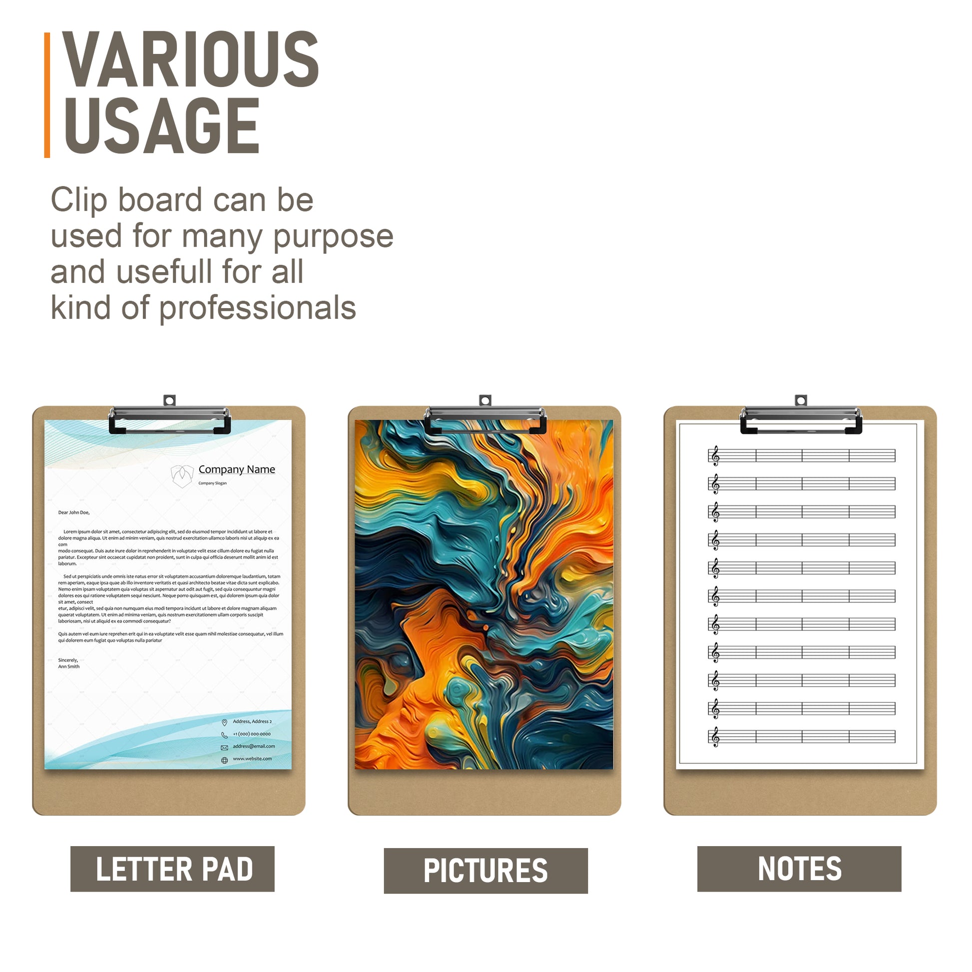 - Map van hardboardhout met metalen clip en gladde randen om krassen en sneden te voorkomen.