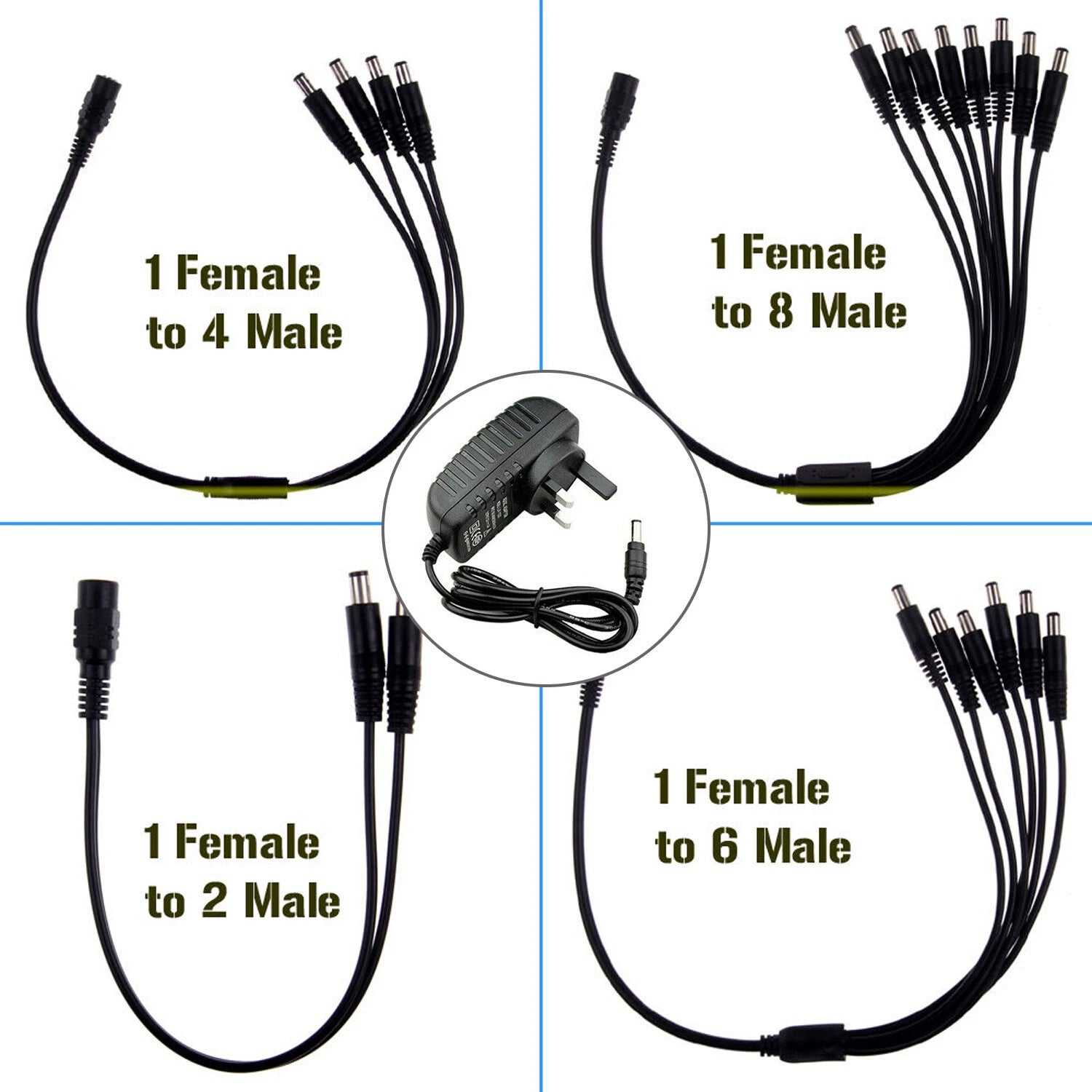 - Standaard mannelijke connector, levert betrouwbare stroom voor LED-lichtsnoeren, striplampen, CCTV-camera's en alle apparaten die 12V-spanning nodig hebben.