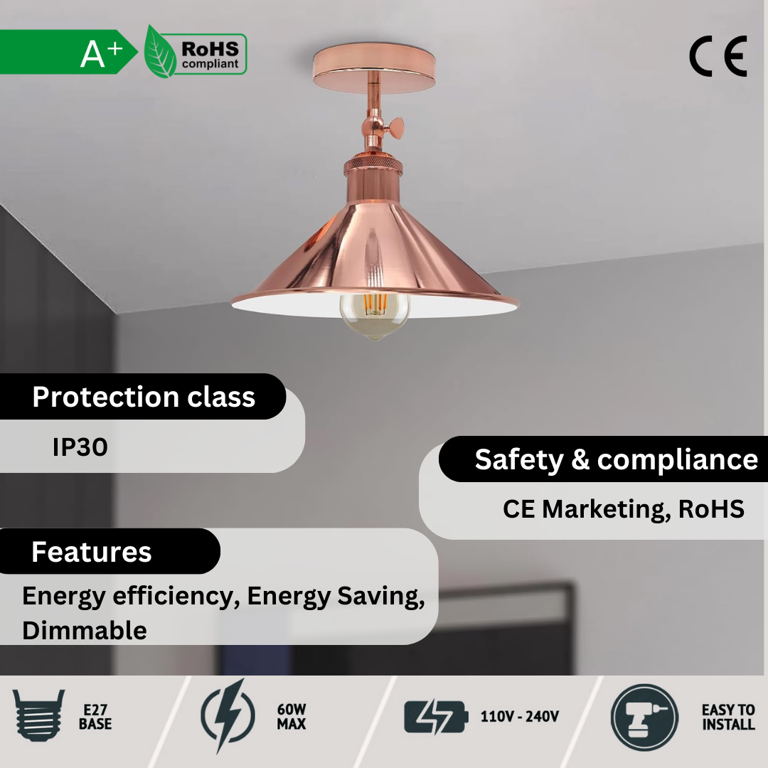 - Het eenvoudige kegelvormige lampenkapontwerp van deze plafondlamp in de hal vormt direct het middelpunt van uw kamer.
