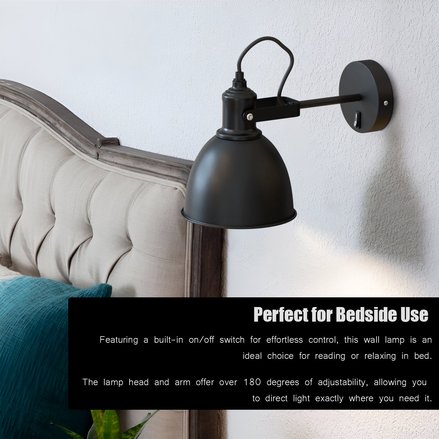 - De wandlamp is voorzien van een 180° draaibare fitting, waardoor je de lichtrichting eenvoudig naar wens kunt aanpassen. Perfect voor het creëren van gerichte verlichting of een sfeervolle gloed.