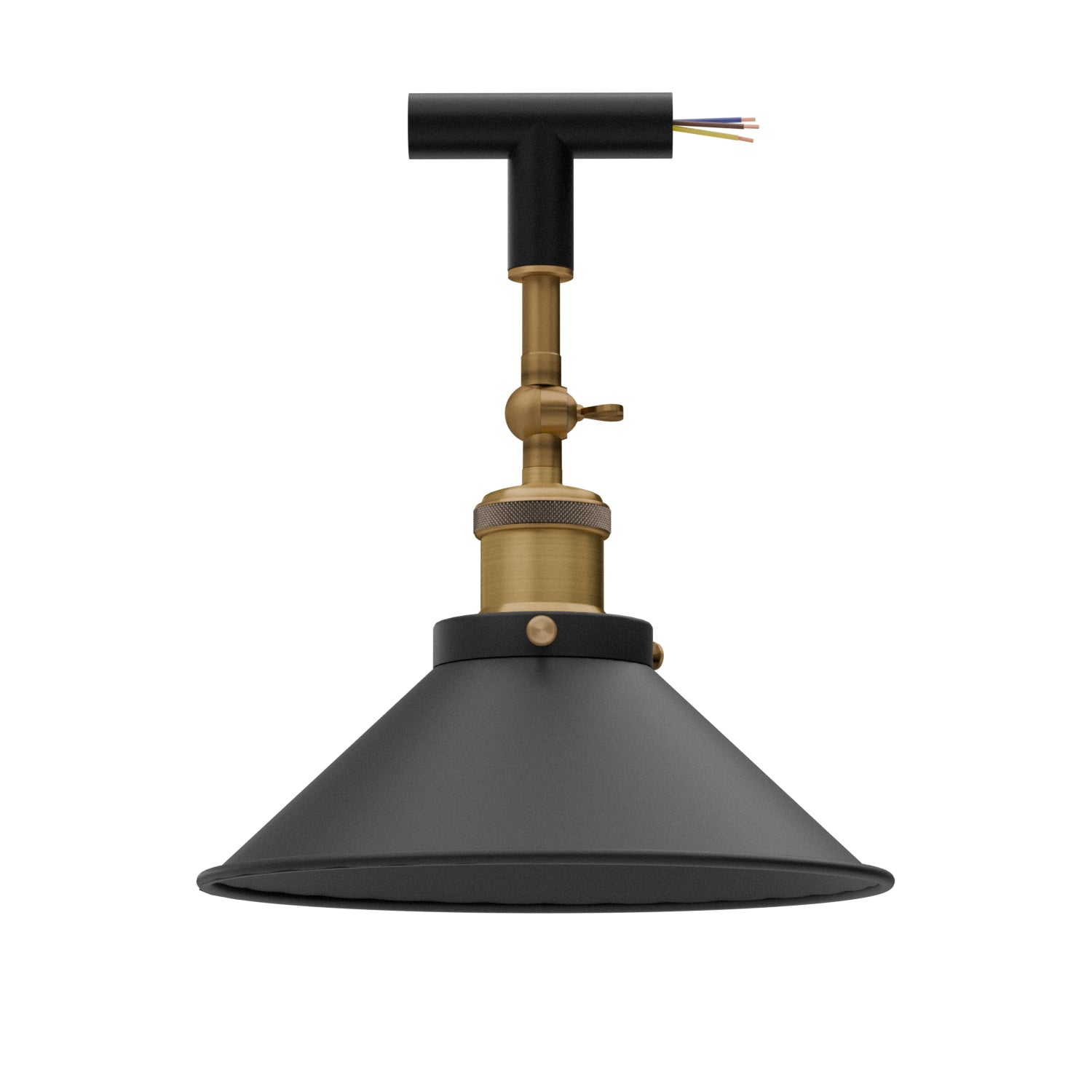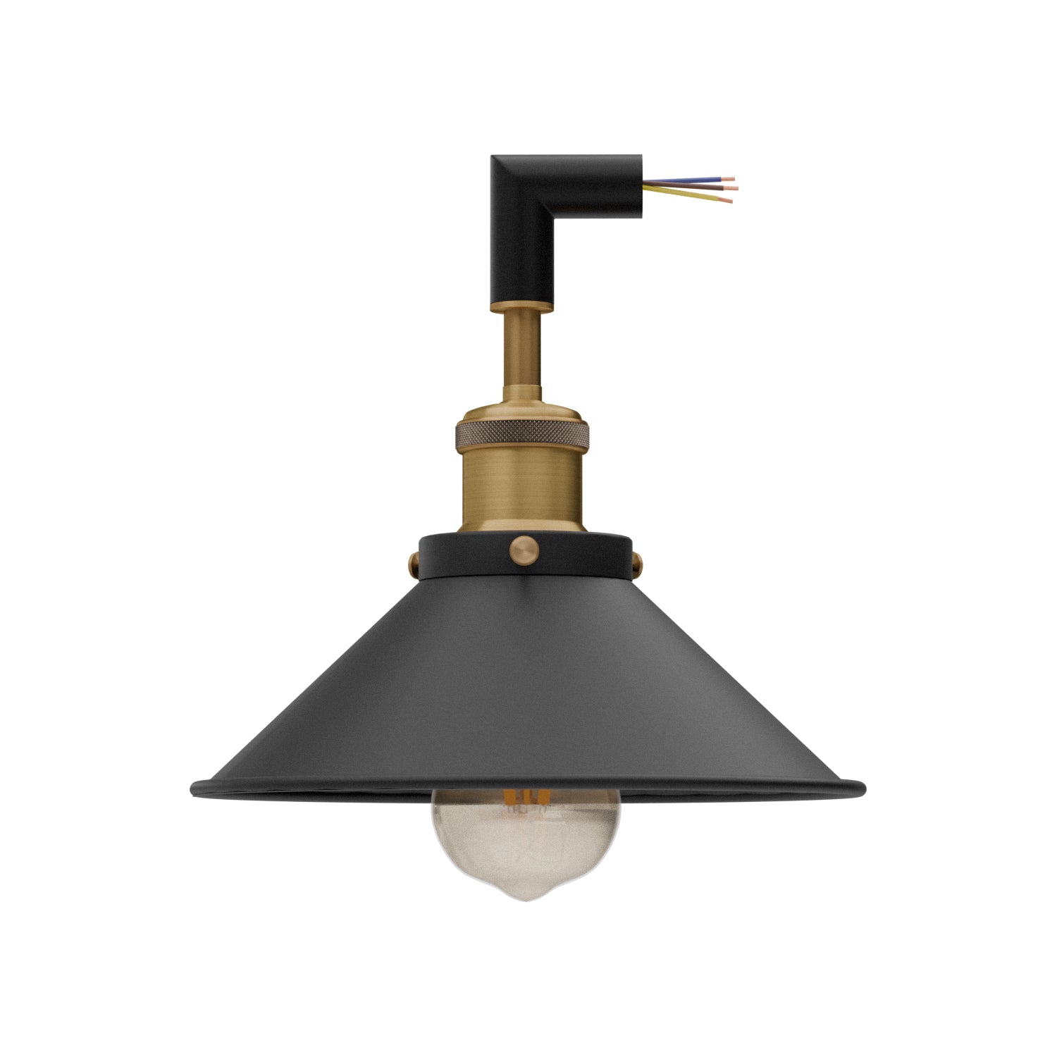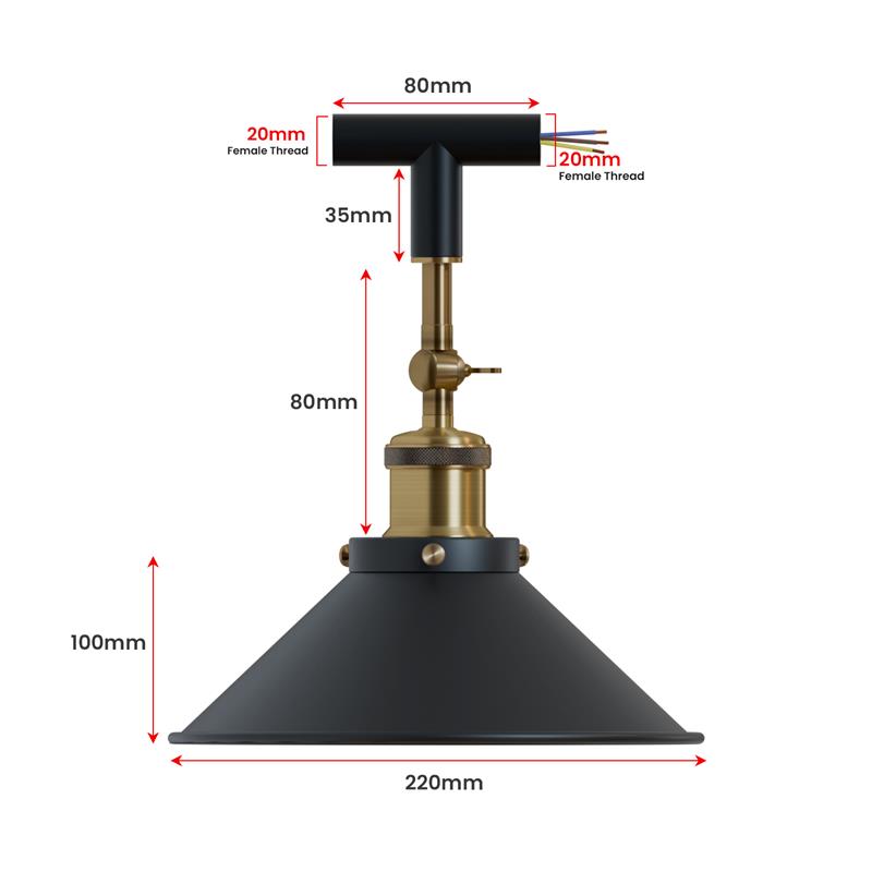 - Deze verstelbare wandlamp is zo ontworpen dat hij naadloos past op een 20 mm buis met een 90°-bocht of een T-connector, waardoor u over veelzijdige bedradingsoplossingen beschikt.