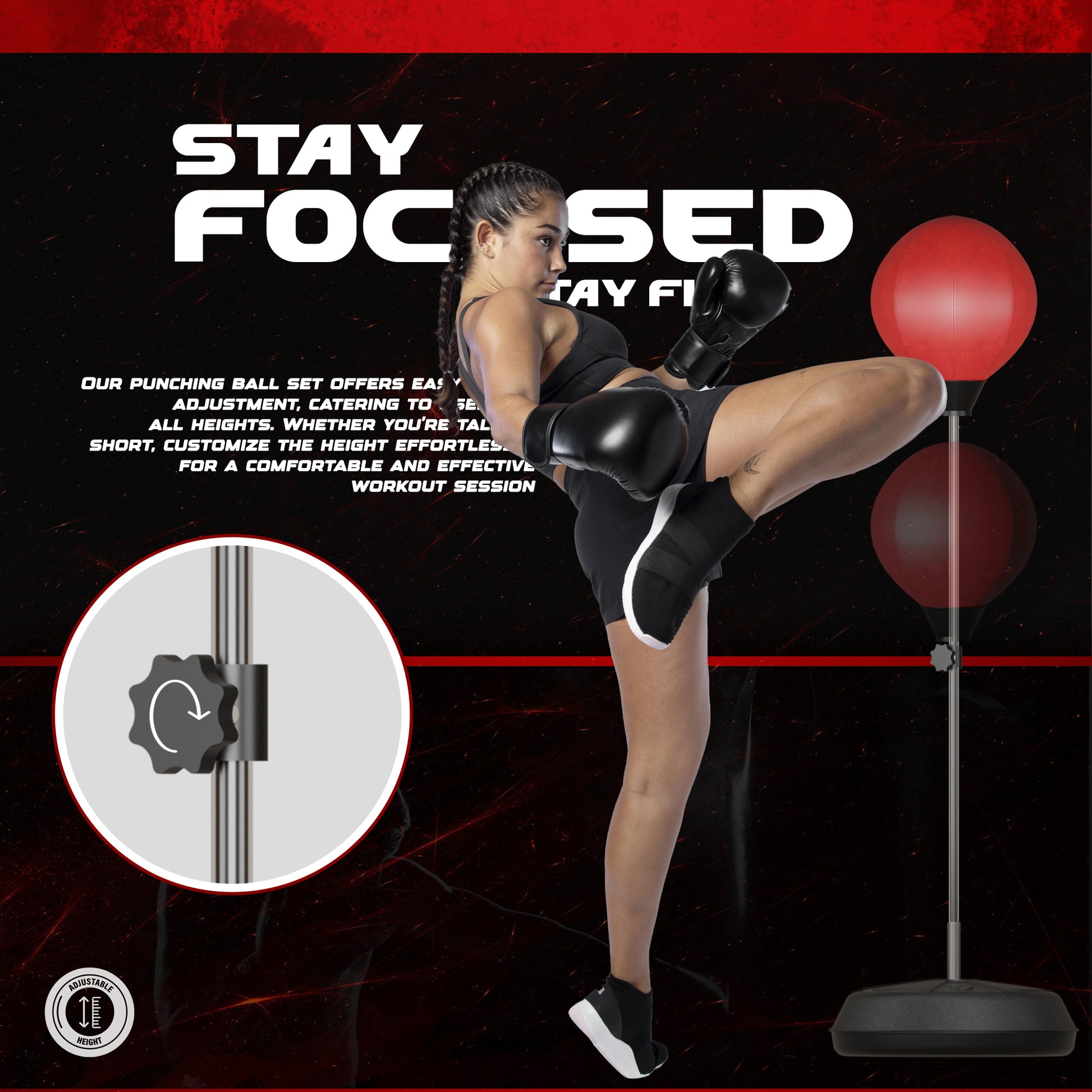 - De hoogte van de opblaasbare punchbal is aan te passen van 126 tot 146 cm, waardoor hij voldoet aan de behoeften van gebruikers met verschillende lengtes.