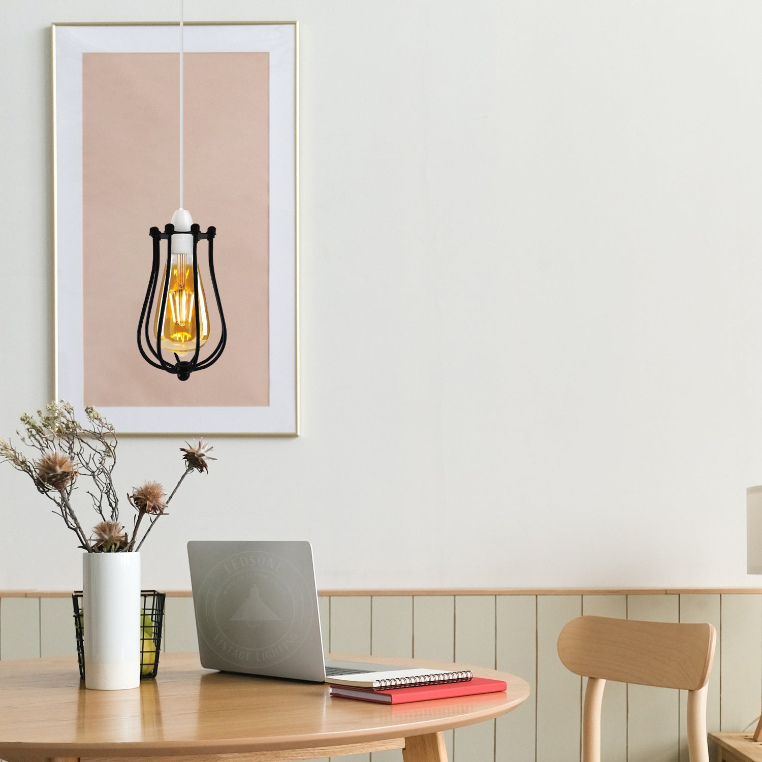 - Deze kooilamp is gemaakt van metaal, een hoogwaardig materiaal met een uitstekende afwerking.