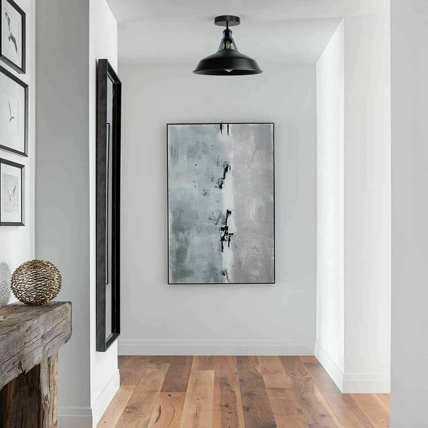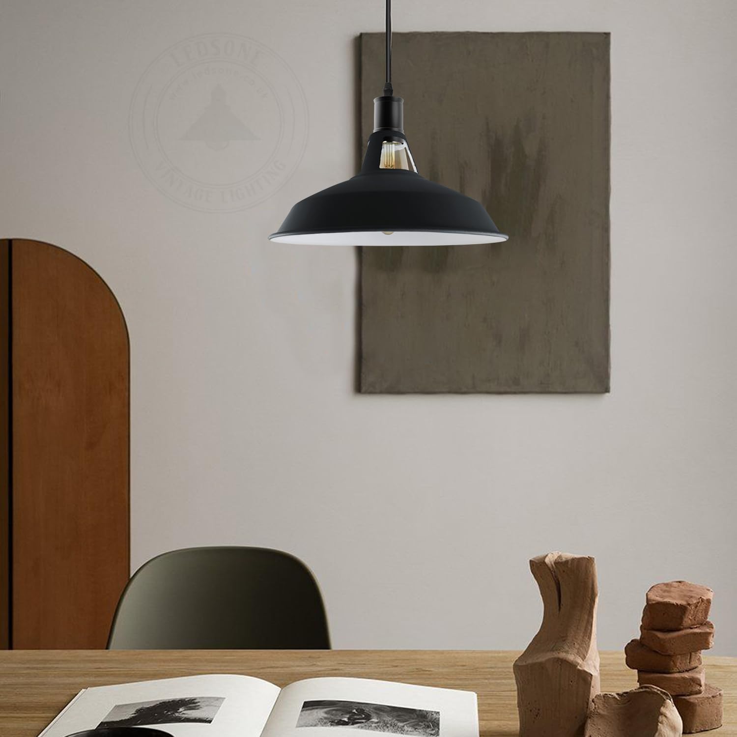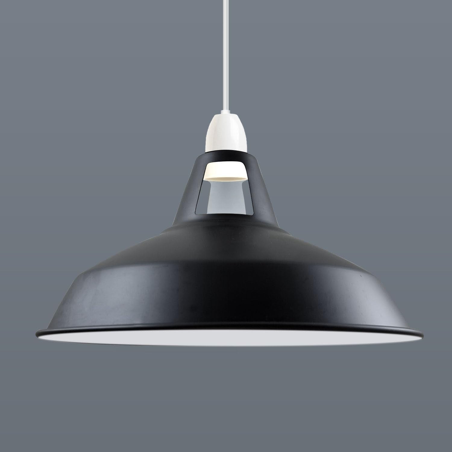 - Deze eenvoudige, strakke Barn plafondlamp met sleuven heeft een vintage look. Met een diameter van 30 cm is deze hanglamp groot genoeg om voldoende licht te geven en tegelijkertijd compact genoeg om in de meeste ruimtes te passen.