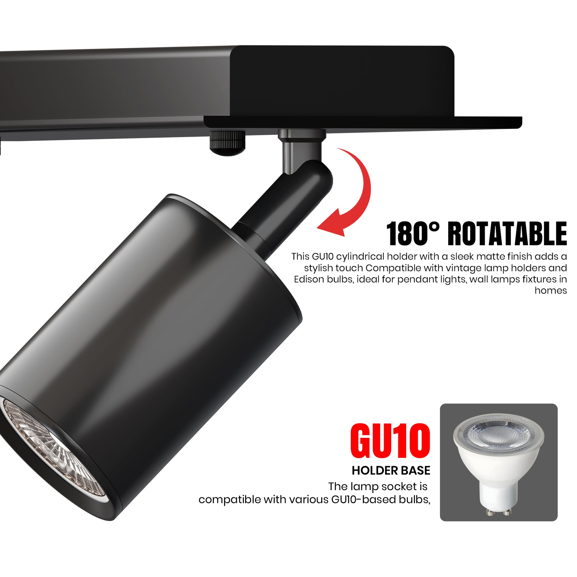 Light Type: Likely compatible with GU10 LED bulbs (based on typical design)