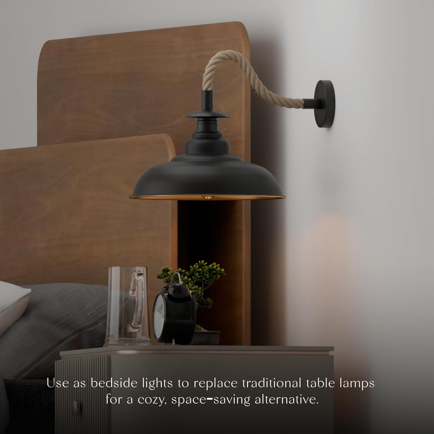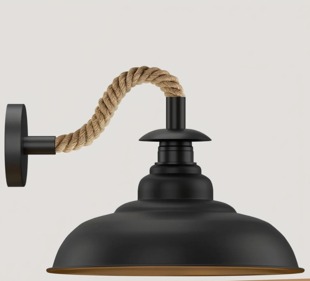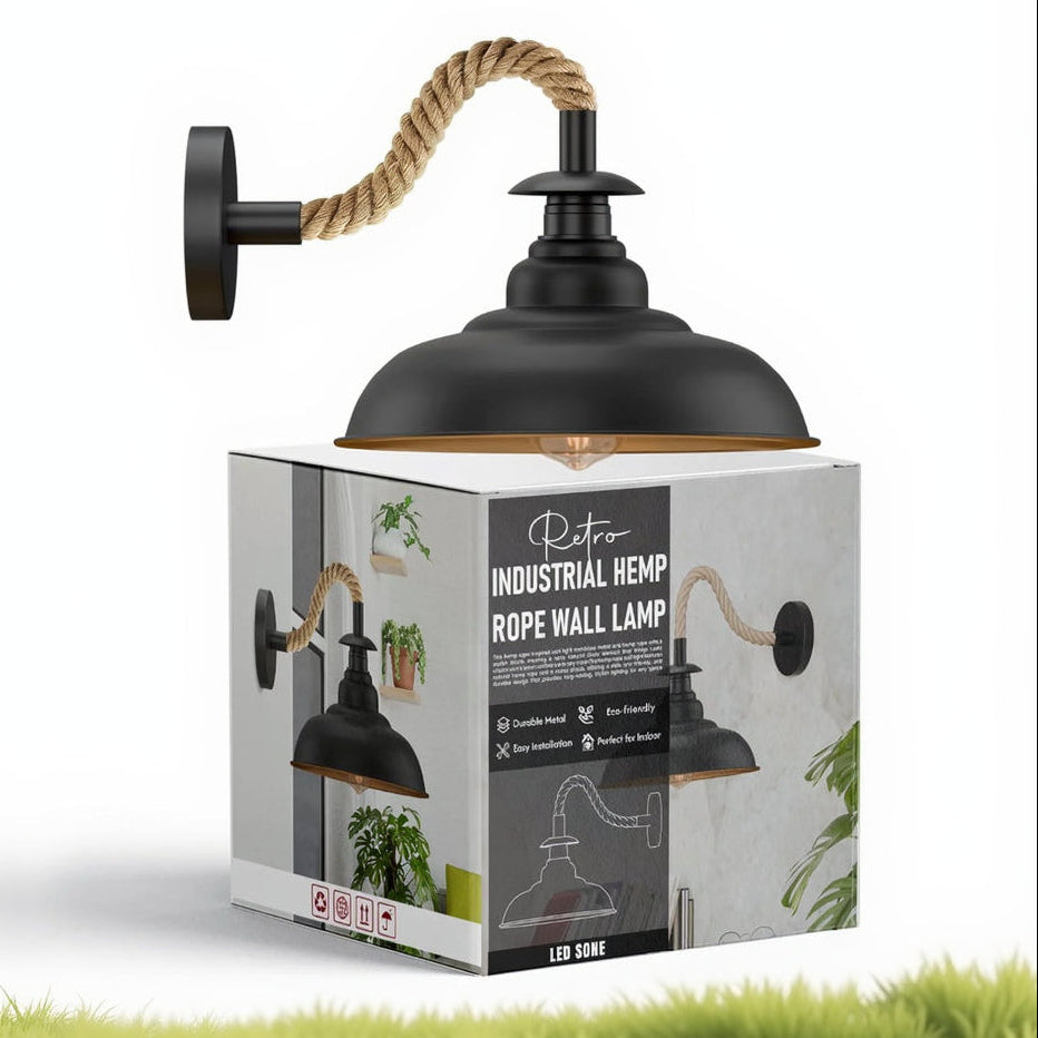 - Stijlvolle, vintage wandlamp met een gedraaide, met henneptouw omhulde kabel met kap, ideaal voor interieurdecoratie.