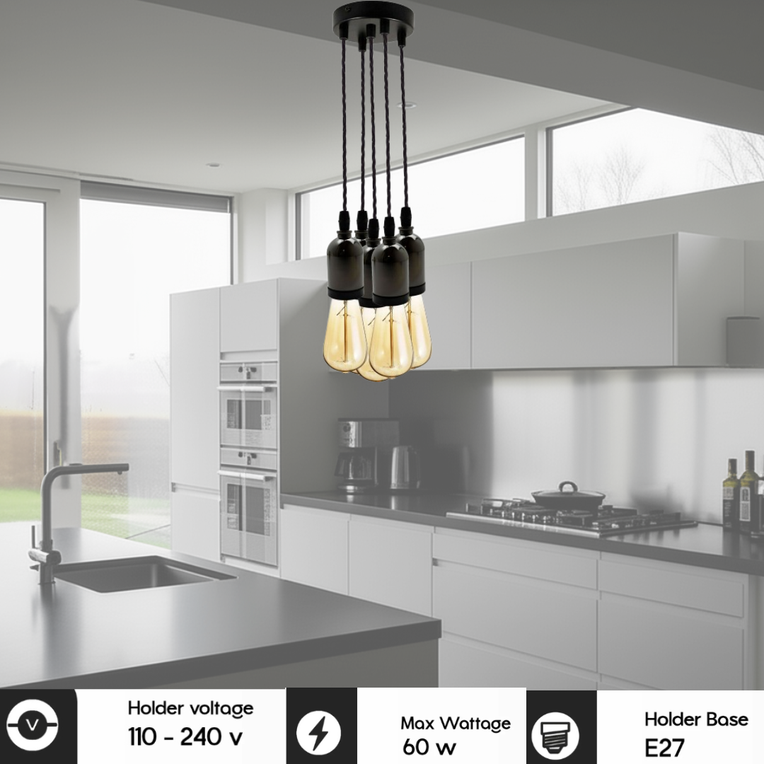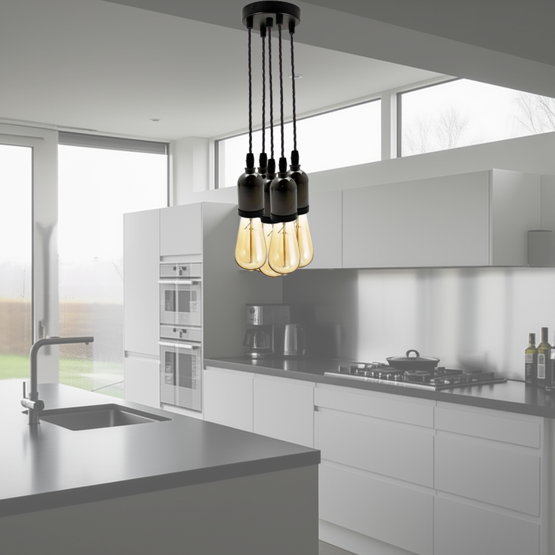 - Hanglamp met 5 stopcontacten (5-lichts hanglampset ( 5 lampen optioneel ))
