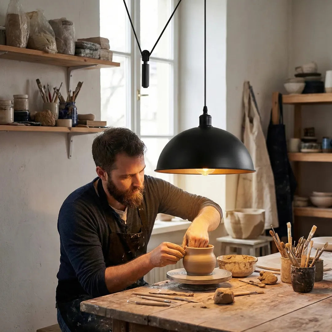 - Adjustable "Rise and Fall" System: Easily adjust the height of the light using the counterweight and pulley mechanism—perfect for changing from task lighting to ambient mood lighting instantly.