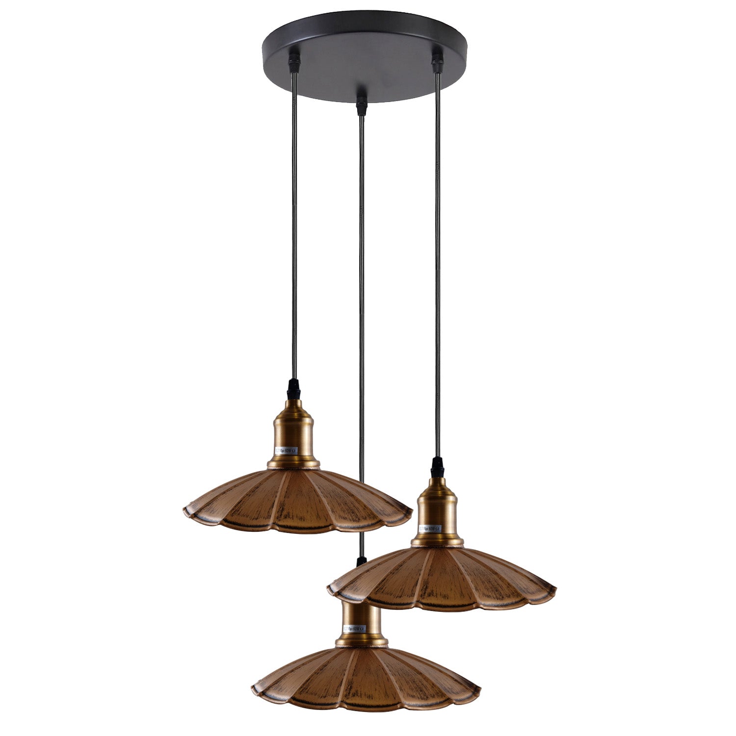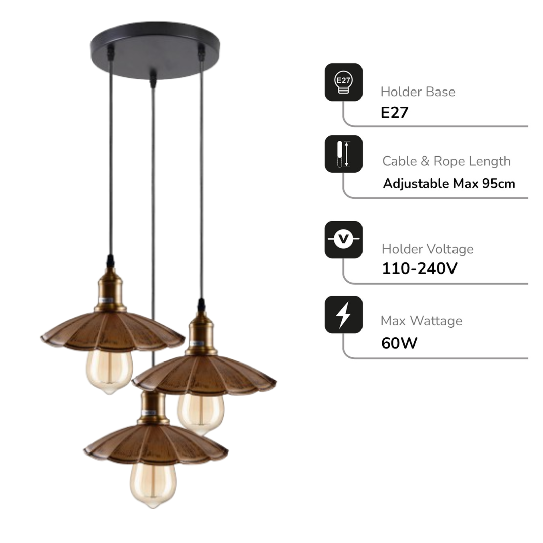 Stijlvol koperen hanglamparmatuur met 3 paraplu's ~1482