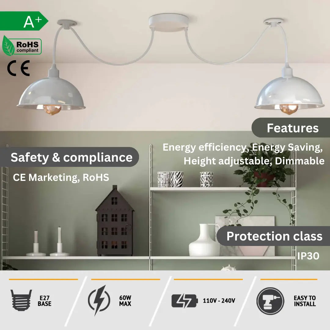 - De hanglamp is voorzien van een E27-fitting met maximaal 60 W en een spanning van 110-240 V, waardoor u de lichtsterkte flexibel kunt instellen.