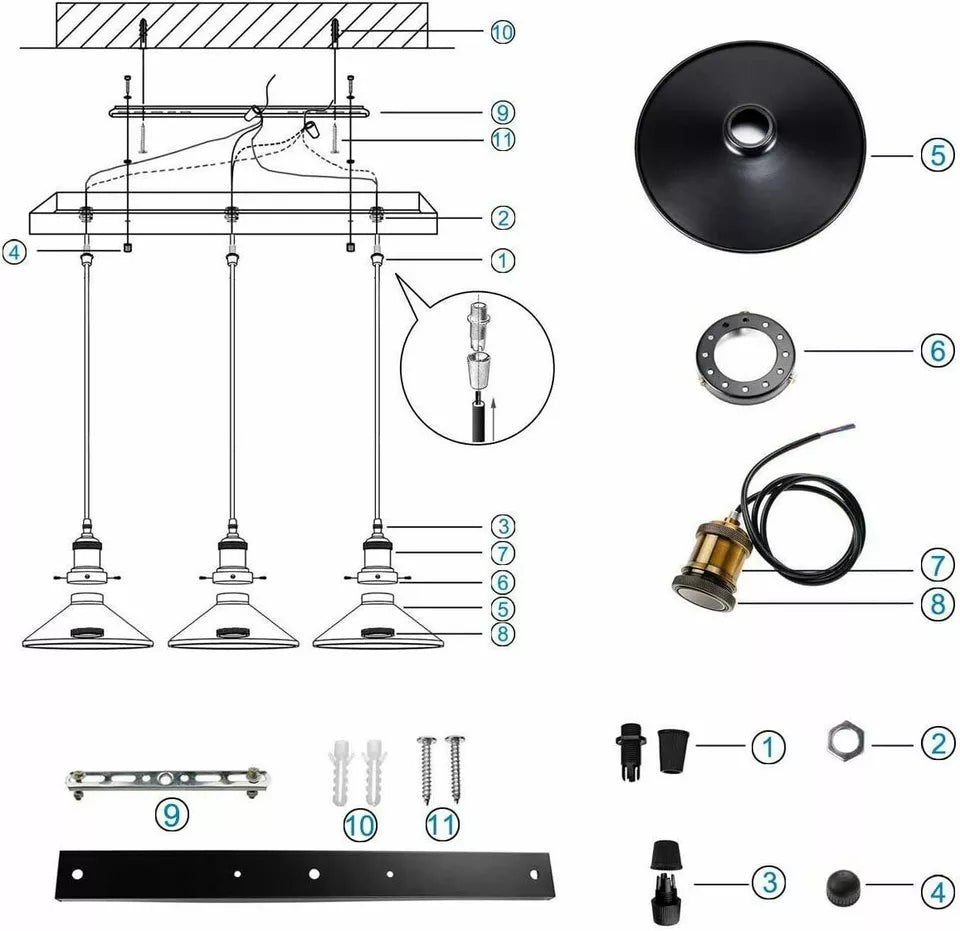 - 3 x 95cm verstelbare flex met E27-fitting. (Lamp niet inbegrepen)