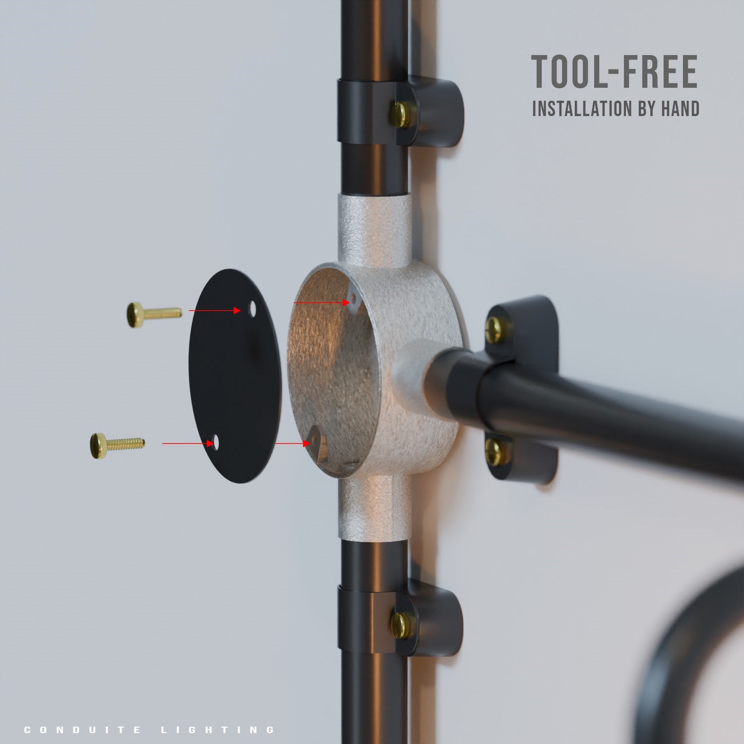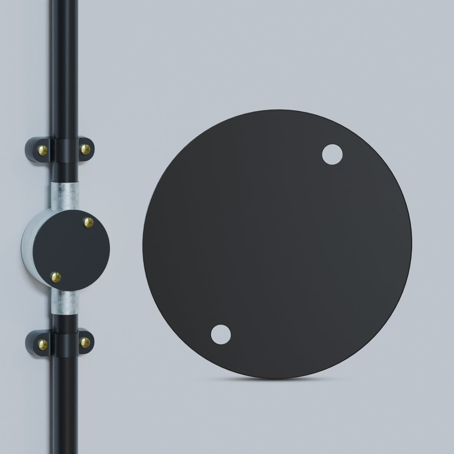 - 1 x Metalen zwarte ronde deksel voor de aansluitdoos
