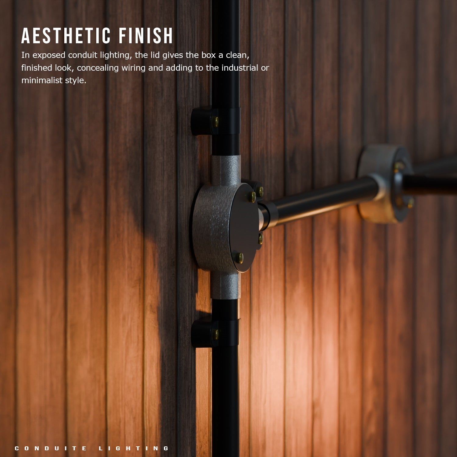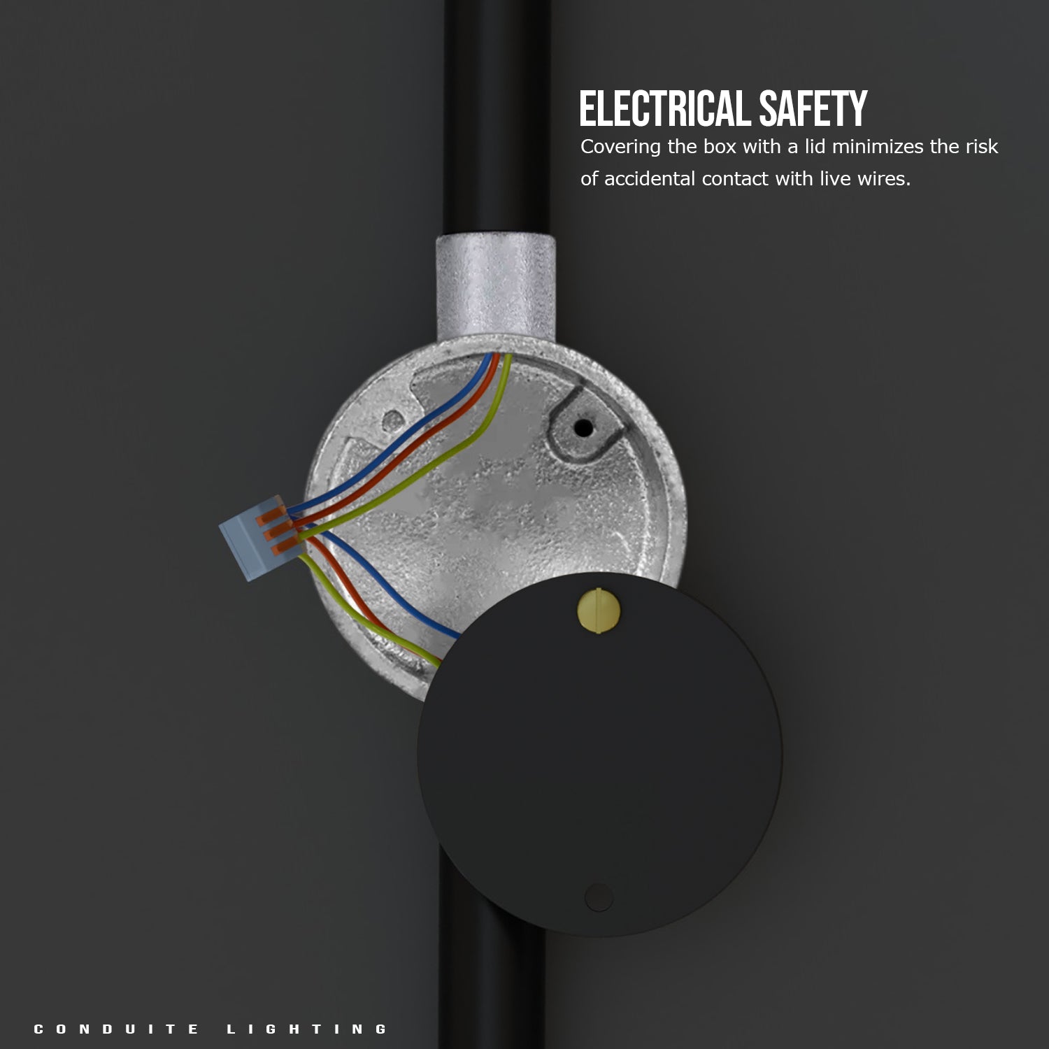 - De metalen, zwarte, ronde conduitboxdeksel is gemaakt van hoogwaardig metaal, wat zorgt voor een uitzonderlijke duurzaamheid en slijtvastheid. Hierdoor is de deksel perfect voor toepassingen binnenshuis.