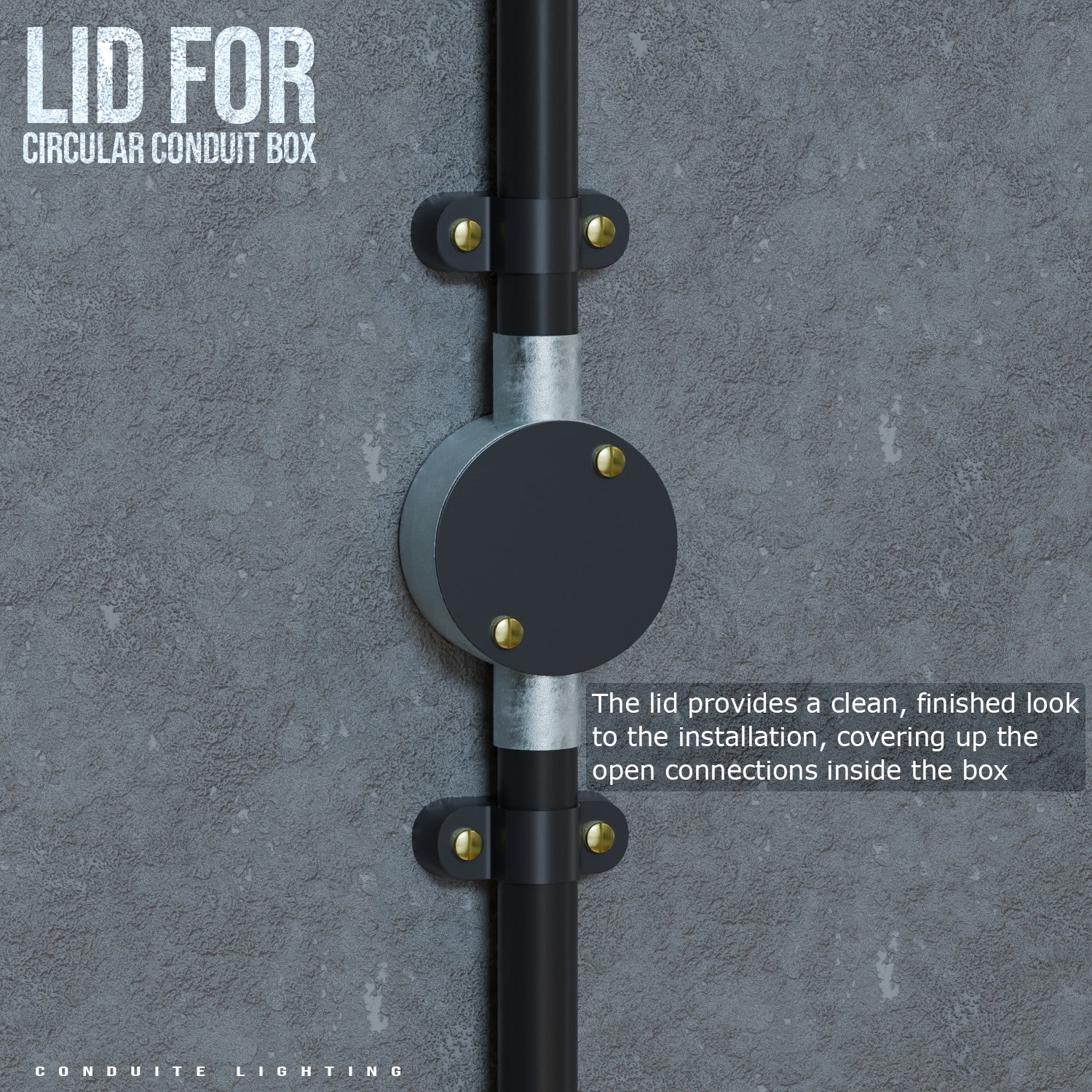 - Artikeltype: Metalen zwarte ronde deksel voor aansluitdoos